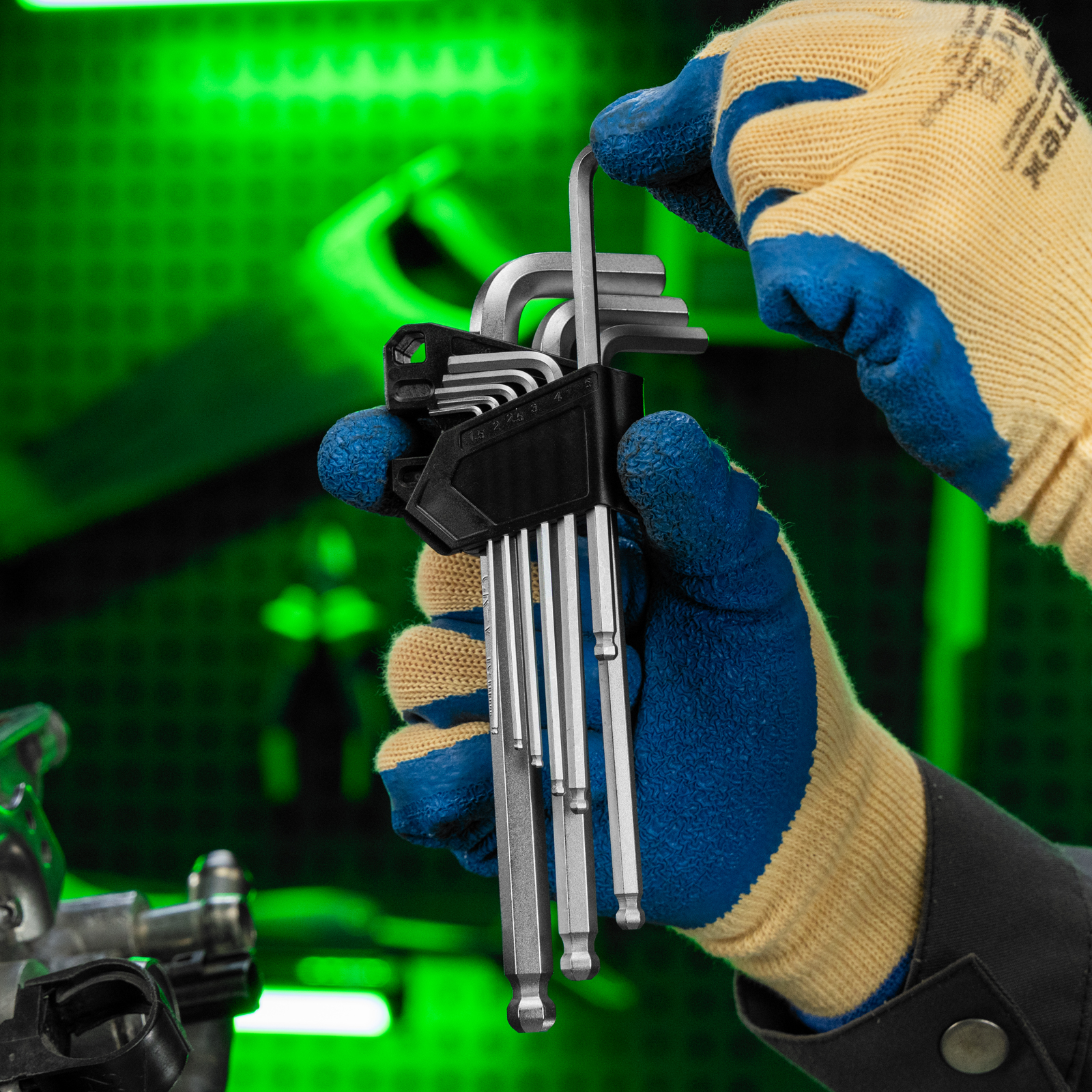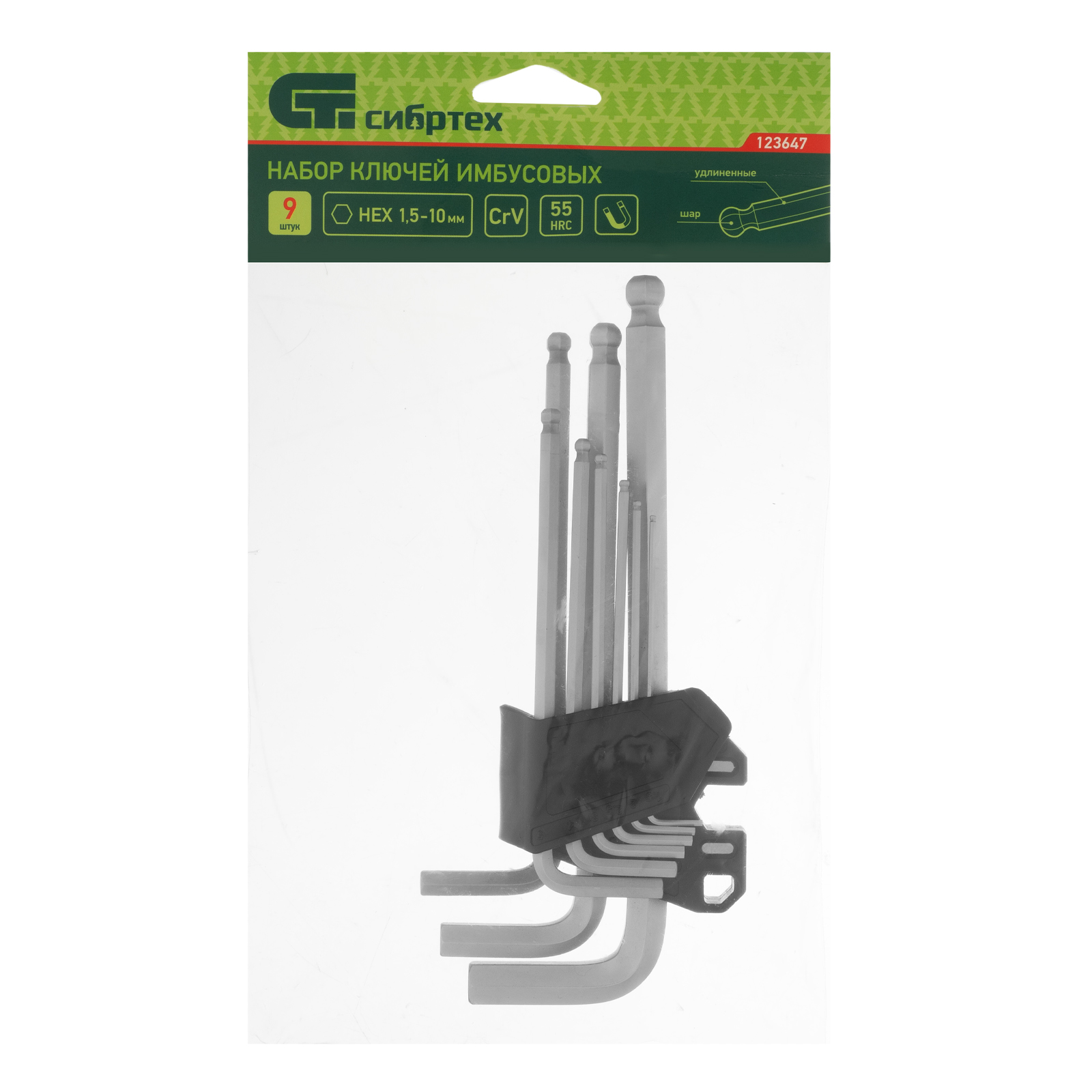Набор ключей имбусовых, HEX, 1,5-10 мм, CrV, 9 шт., удлиненные, с шаром Сибртех
