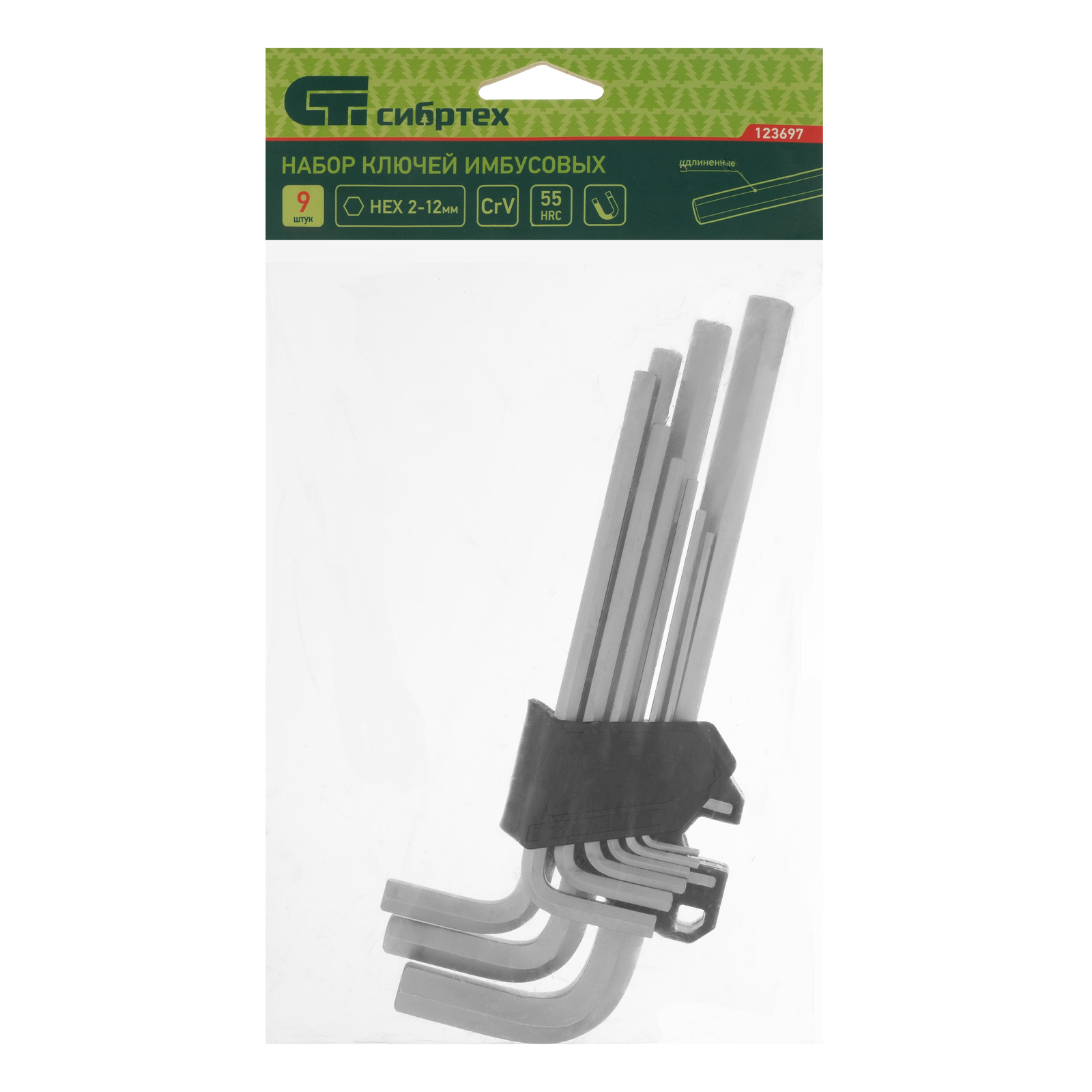 Набор ключей имбусовых, HEX, 2-12 мм, CrV, 9 шт., удлиненные Сибртех