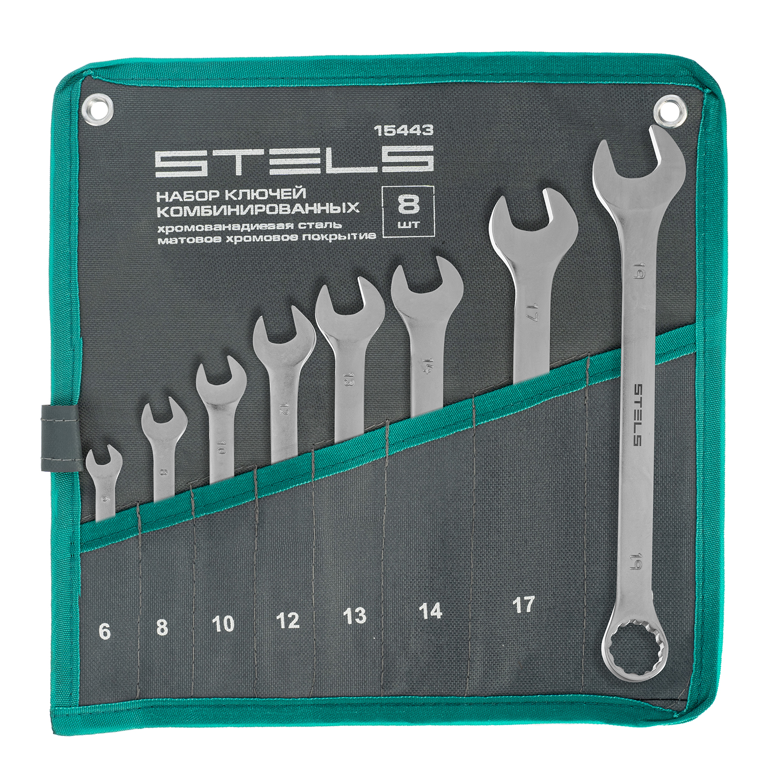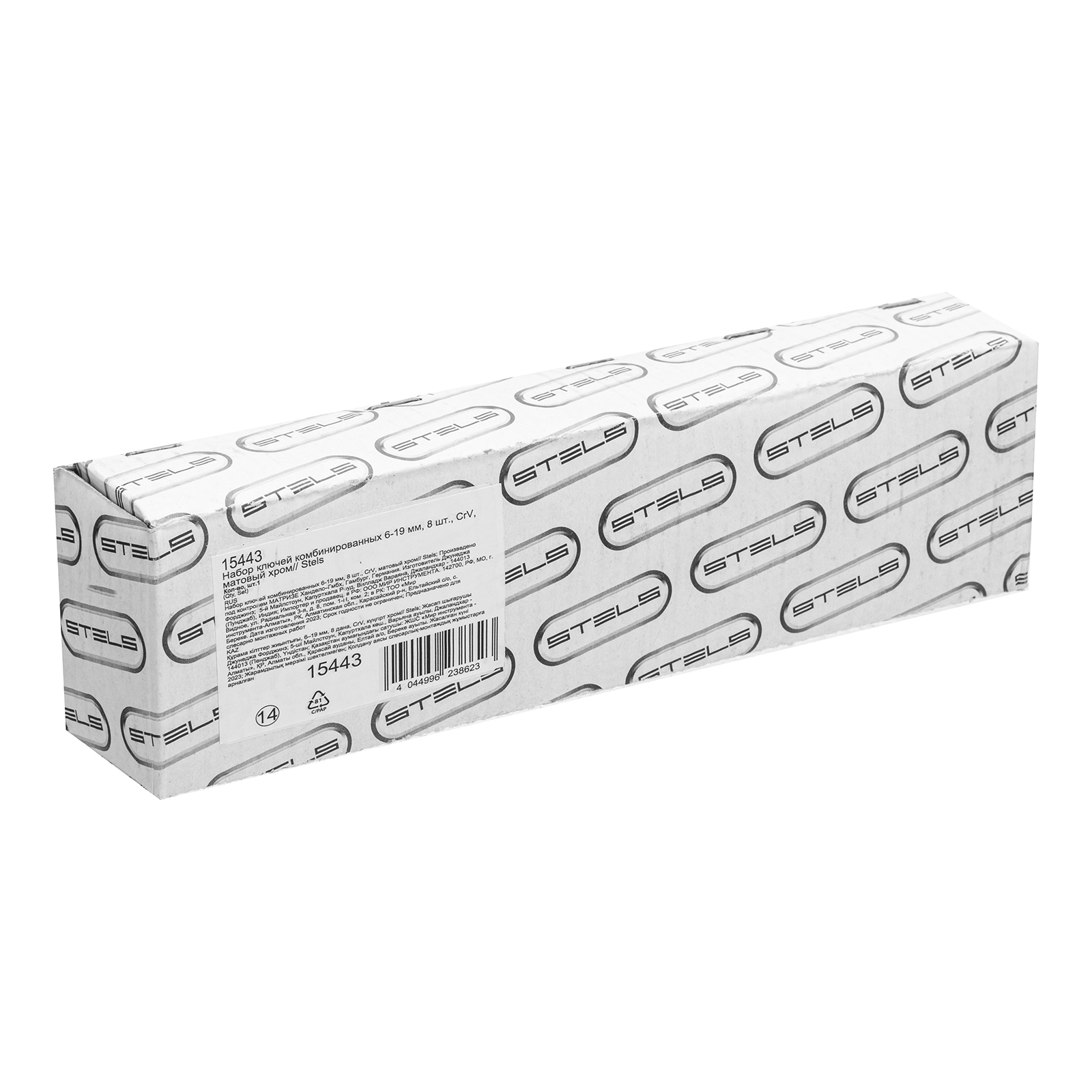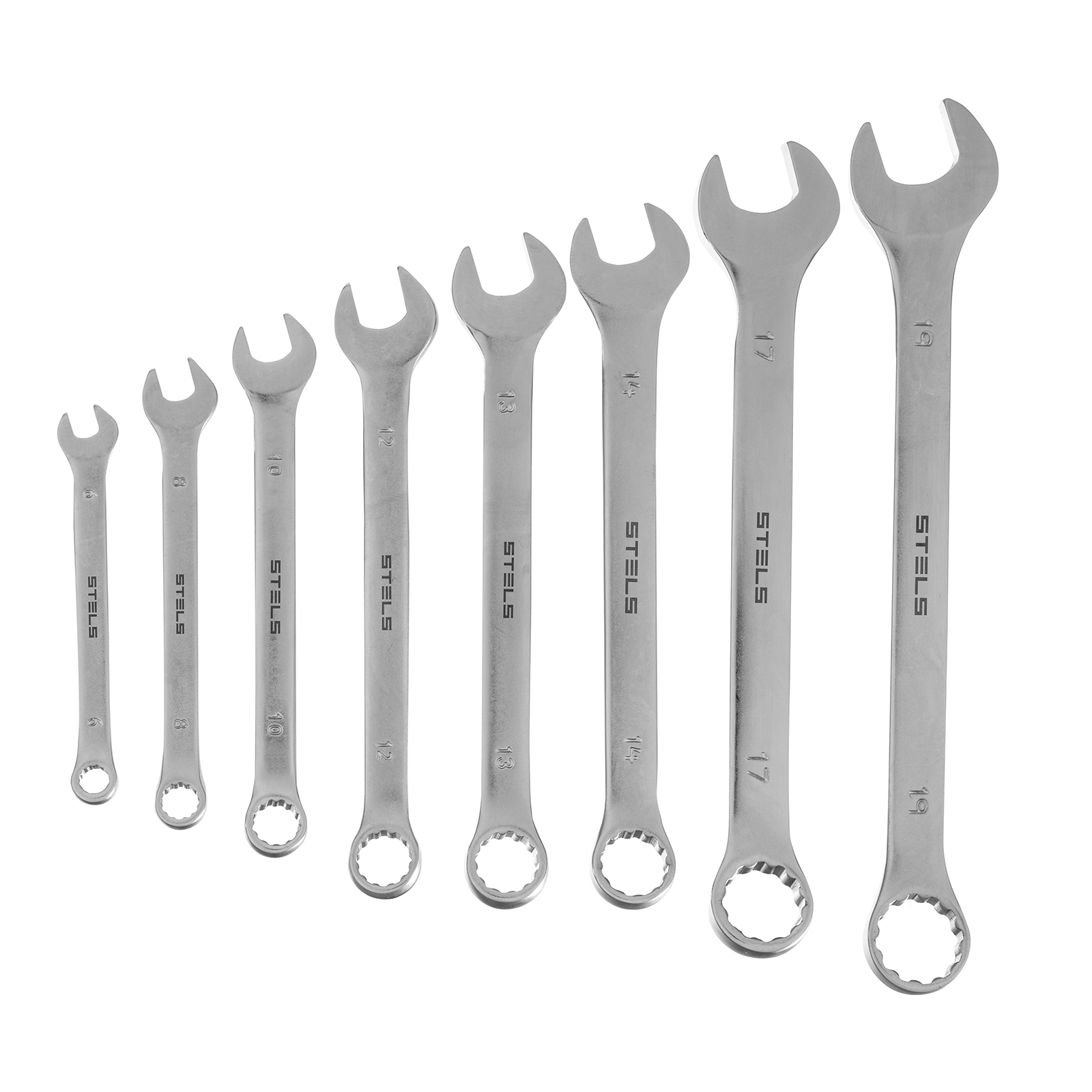 Набор ключей комбинированных 6-19 мм, 8 шт., CrV, матовый хром Stels