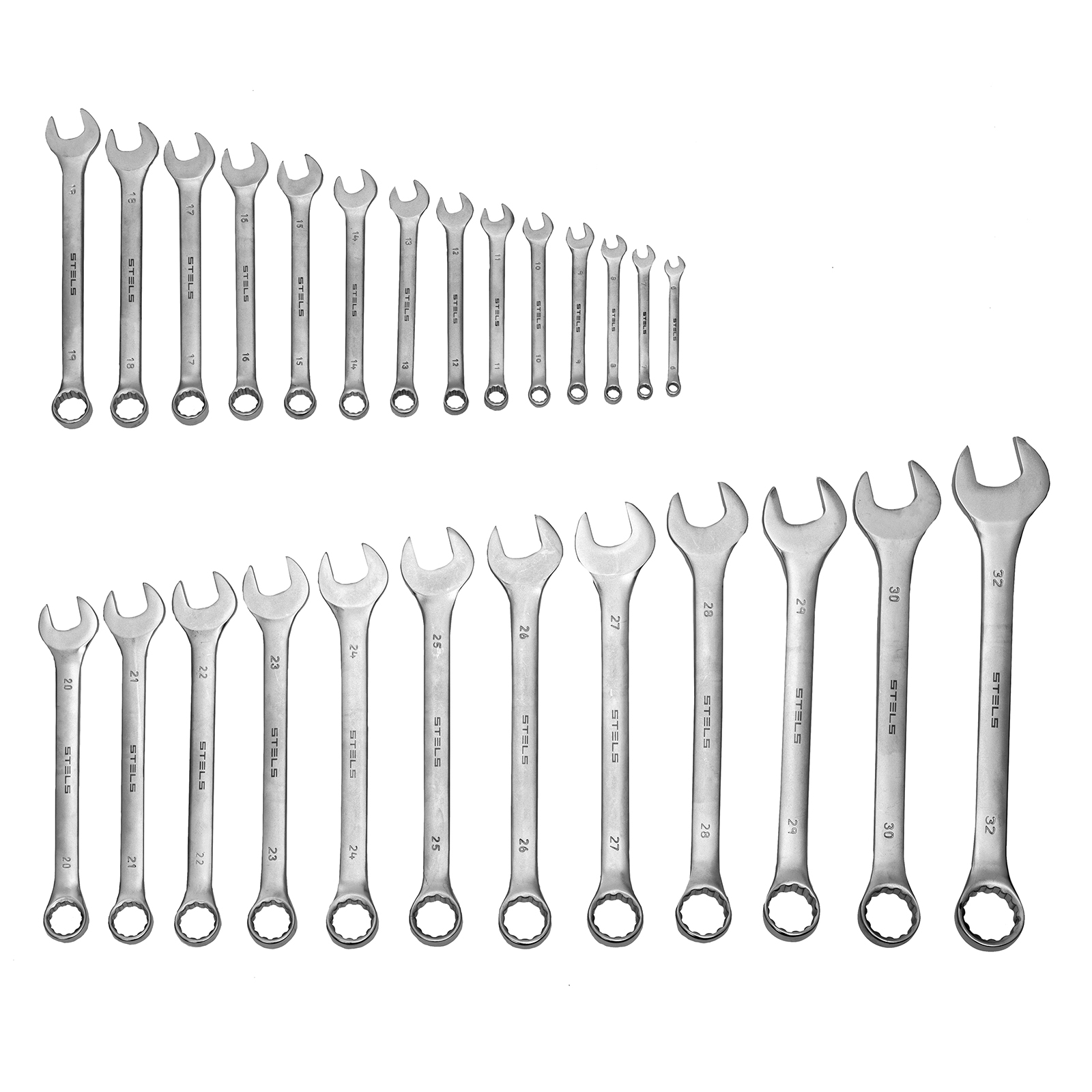 Набор ключей комбинированных 6-32 мм, 26 шт, CrV, матовый хром Stels