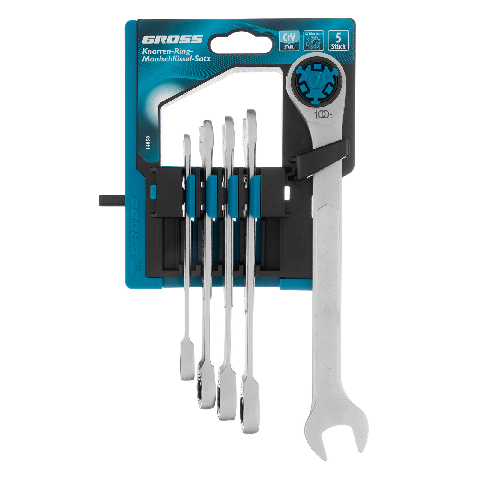 Набор ключей комбинированных трещоточных, количество зубьев 100, СRV, 5 шт, 8- 17 мм Gross