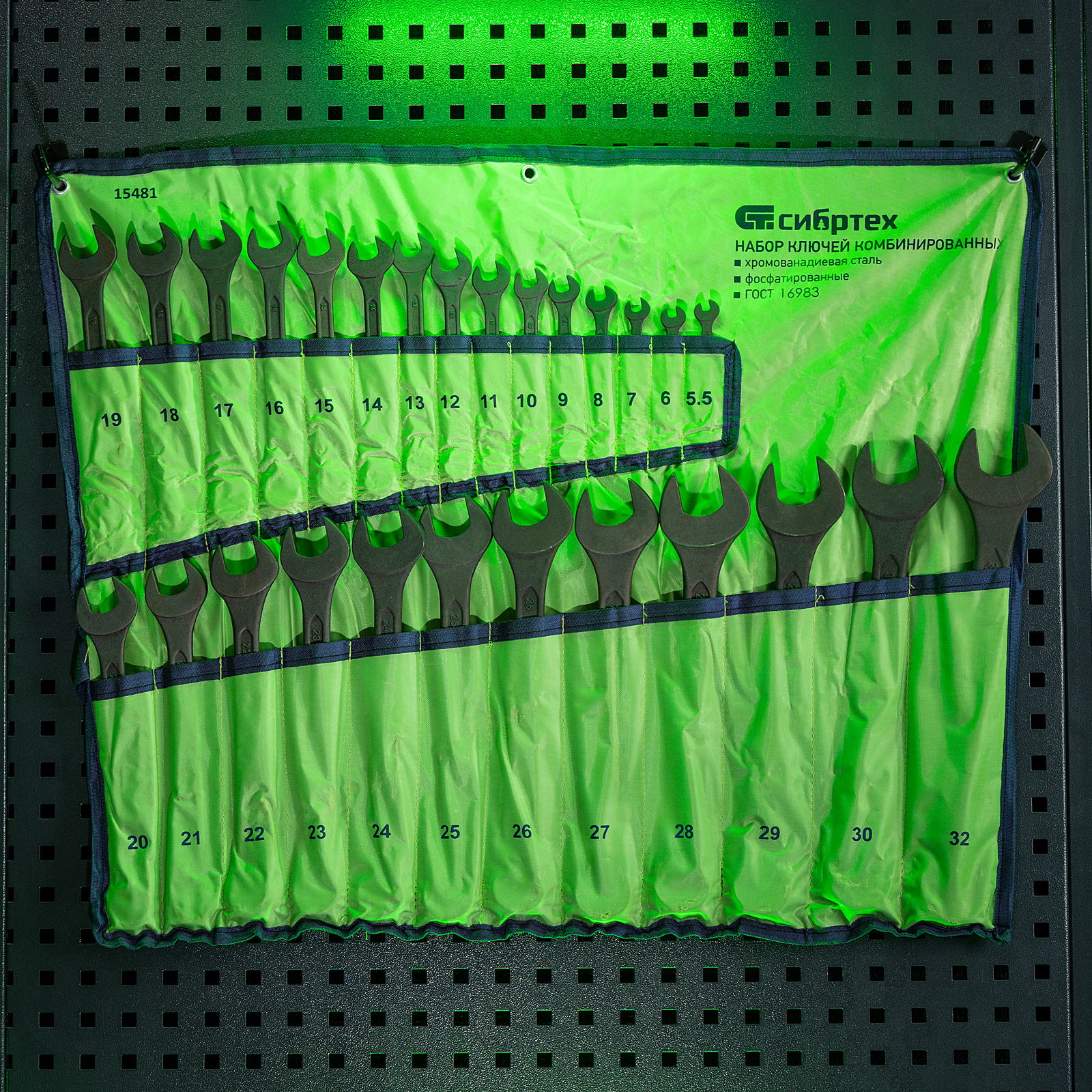 Набор ключей комбинированных, 5,5 - 32 мм, 27 шт., CrV, фосфатированные Сибртех в Казани