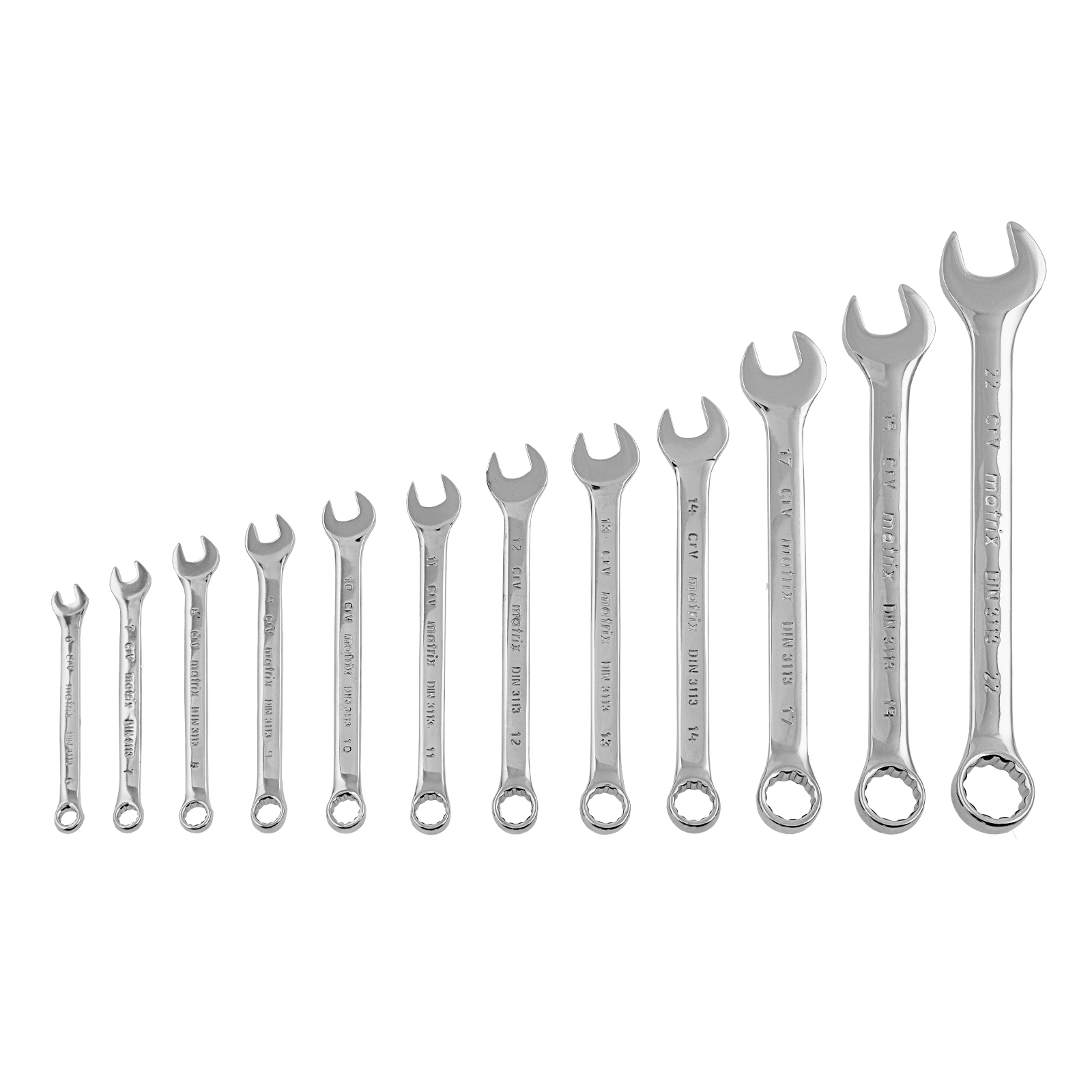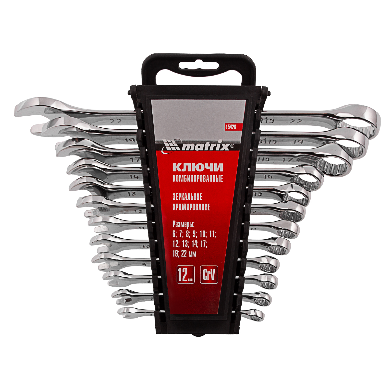 Набор ключей комбинированных, 6-22 мм, 12 шт, CrV, полированный хром Matrix