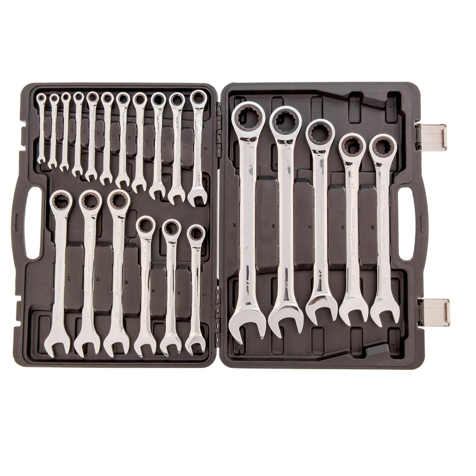 Набор ключей комбинированных, трещоточных - 22 шт, типоразмеры - 6, 7, 8, 9, 10, 11, 12, 13, 14, 15, 16, 17, 18, 19, 20, 21, 22, 23, 24, 27, 30, 32 |