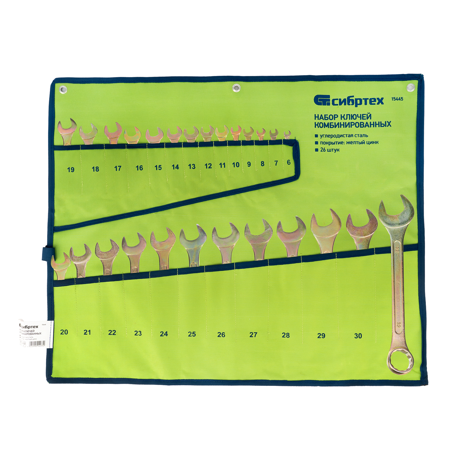 Набор ключей комбинированный 6-32 мм, 26 шт, желтый цинк Сибртех
