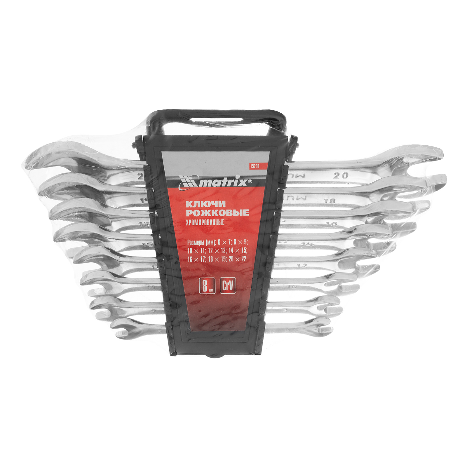 Набор ключей рожковых 8 шт, 6-22мм, CrV, Elliptical, зеркальное хромирование Matrix