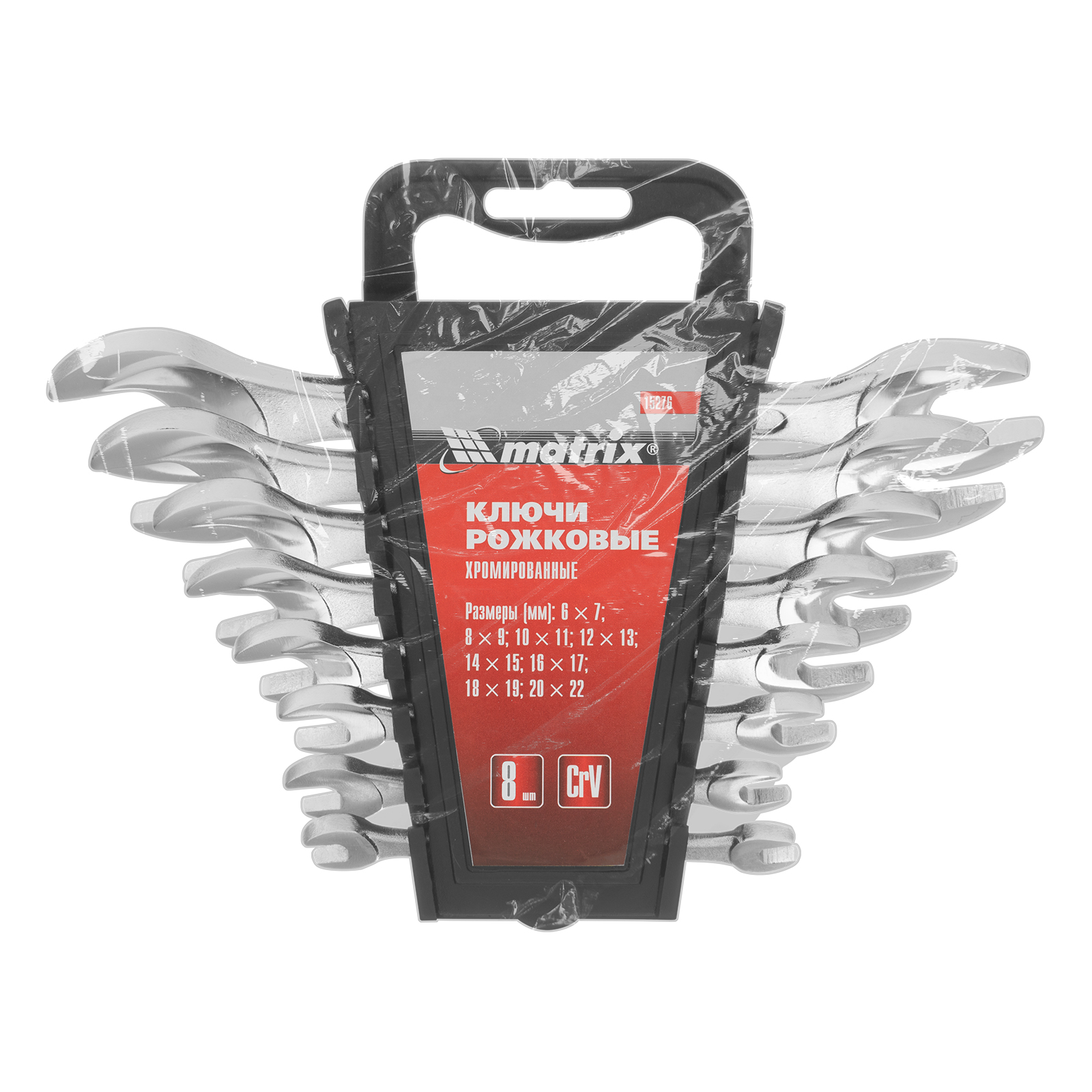 Набор ключей рожковых, 6-22 мм, 8 шт, CrV, хромированные Matrix