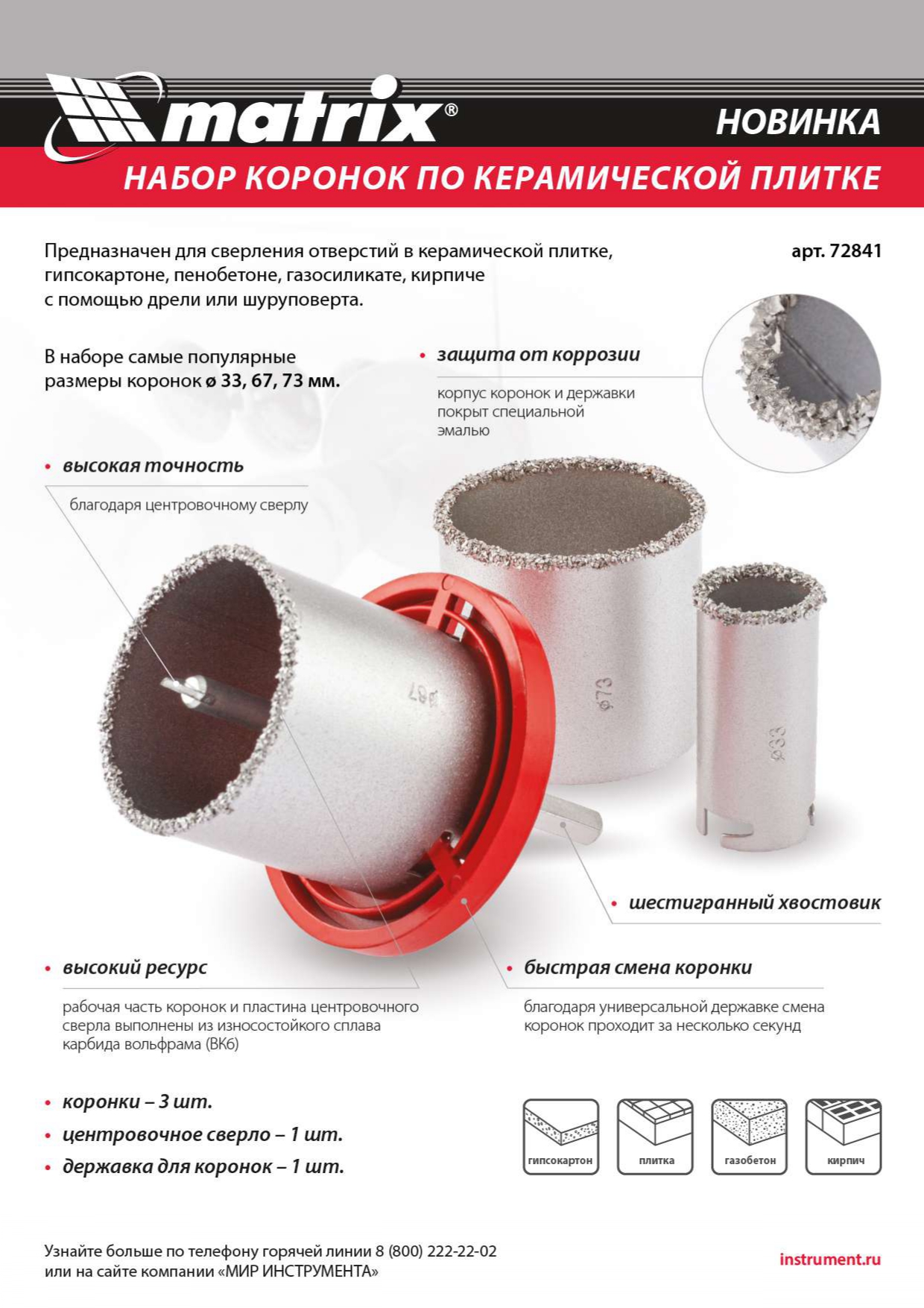 С 2001 года бренд MATRIX стал одним из наиболее популярных производителей ручного инструмента. Алмазные диски, шлифовальные круги, ручной, измерительный и пневматический инструмент, садовый инвентарь, оборудование для гаража, различные расходные материалы и т.д. производятся на территории Китая и Тайваня, проходят строгий контроль качества и отличаются доступной ценой.