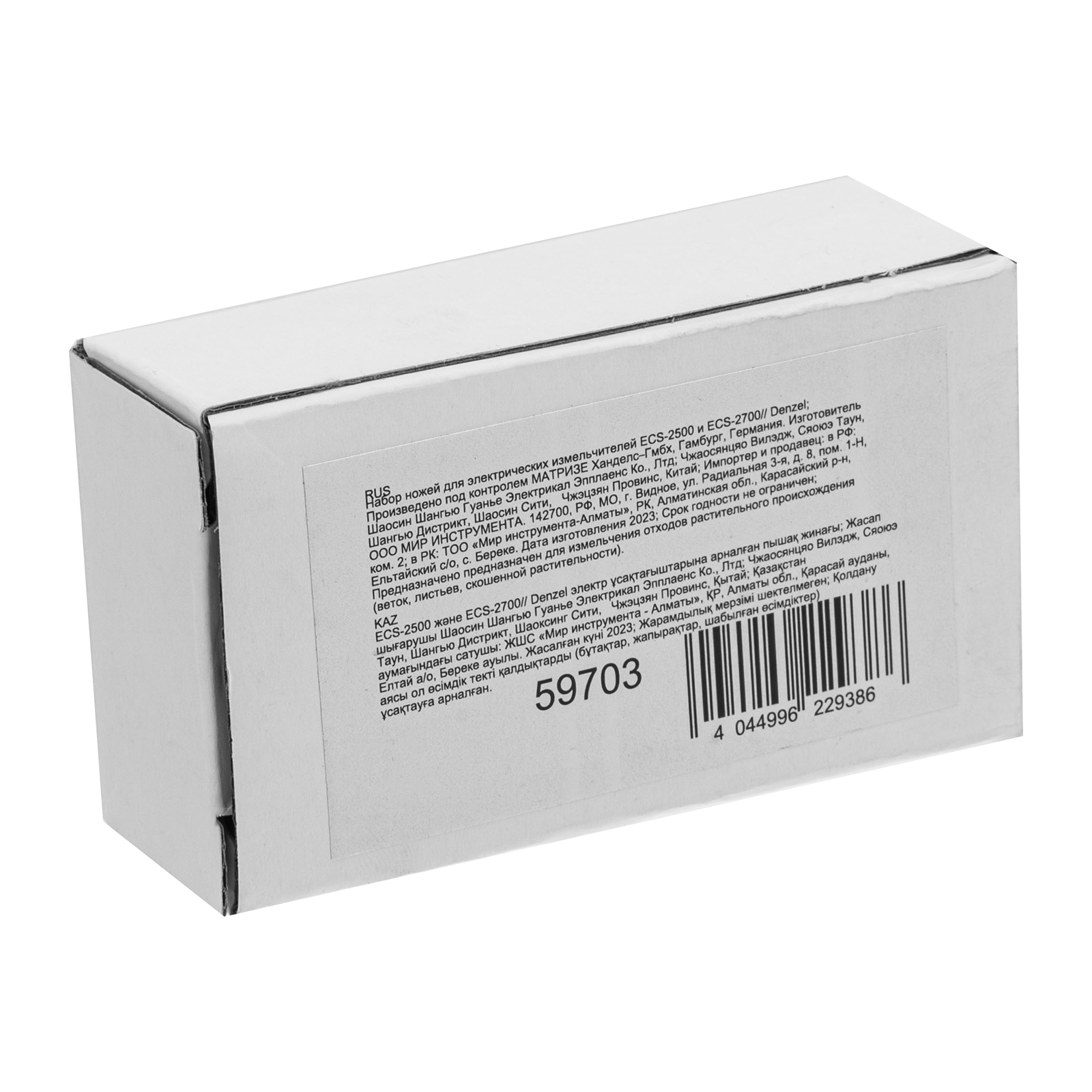 Набор ножей Denzel 59703 предназначен для электрических измельчителей ECS-2500 (арт. 59701) и ECS-2700 (арт. 59702). Позволяет заменить режущие элементы, утратившие рабочие свойства.