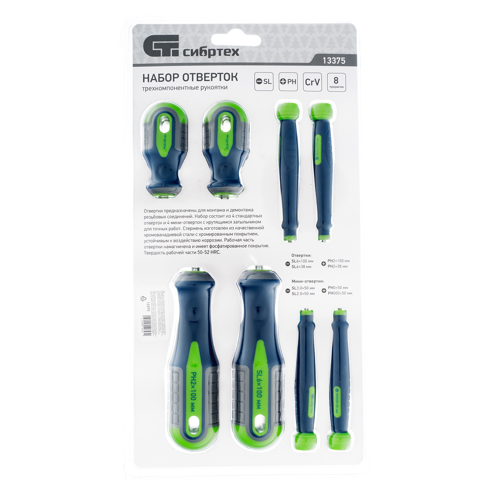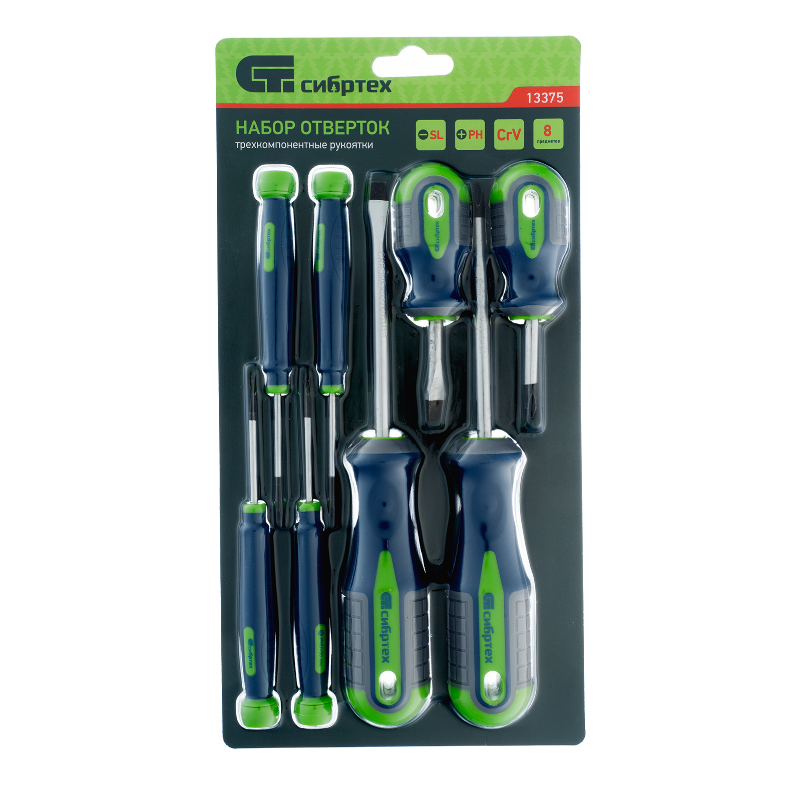 Набор отверток универсальный, CrV, трехкомпонентные рукоятки, 8 предметов Сибртех