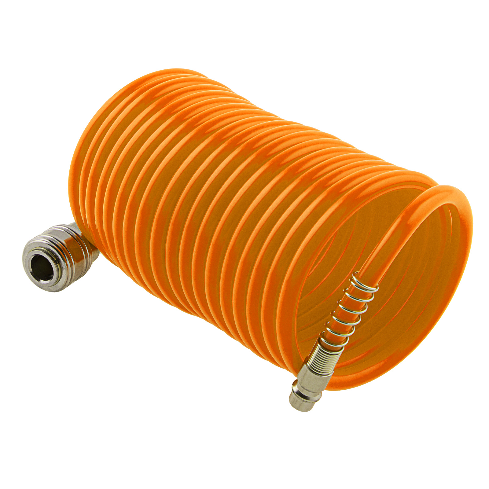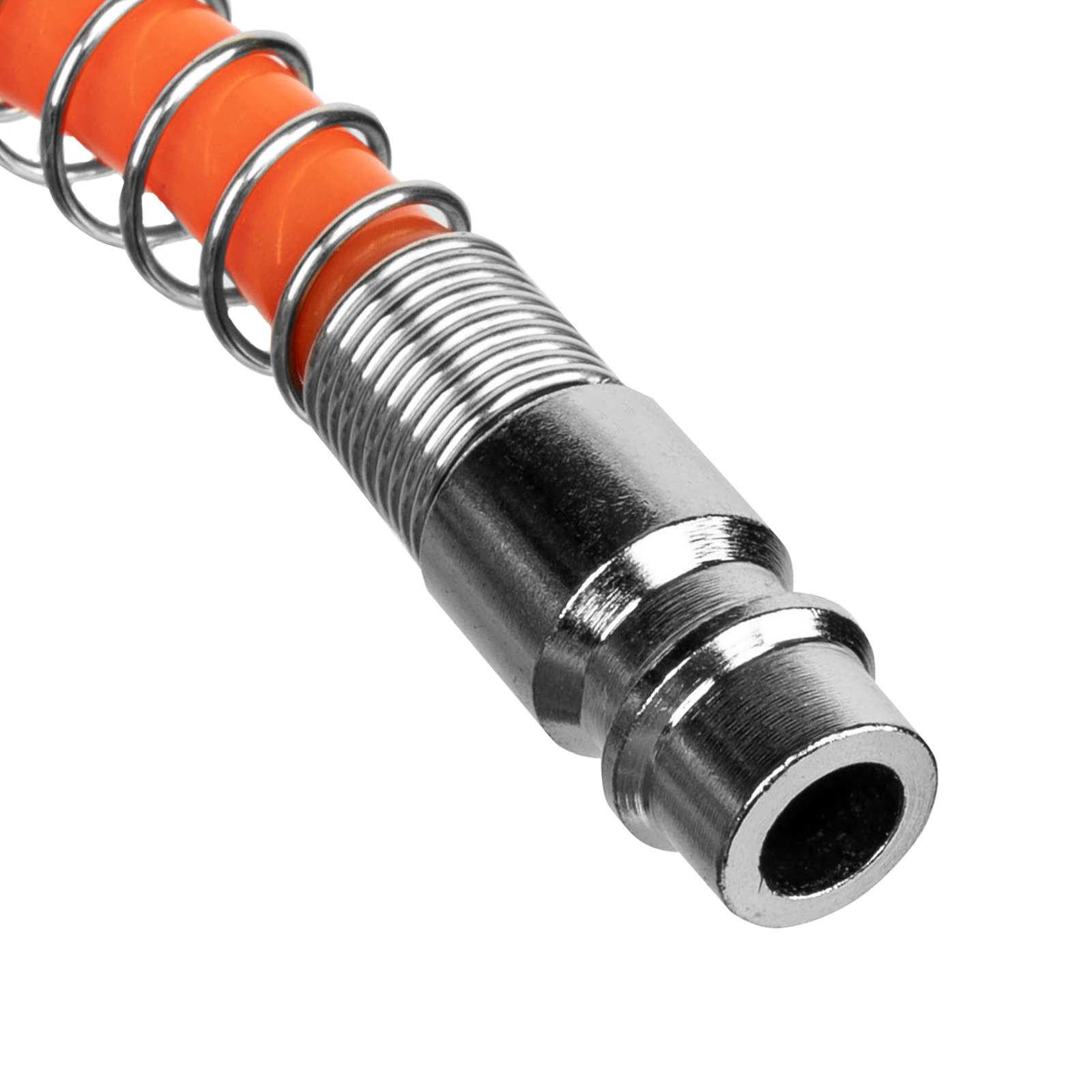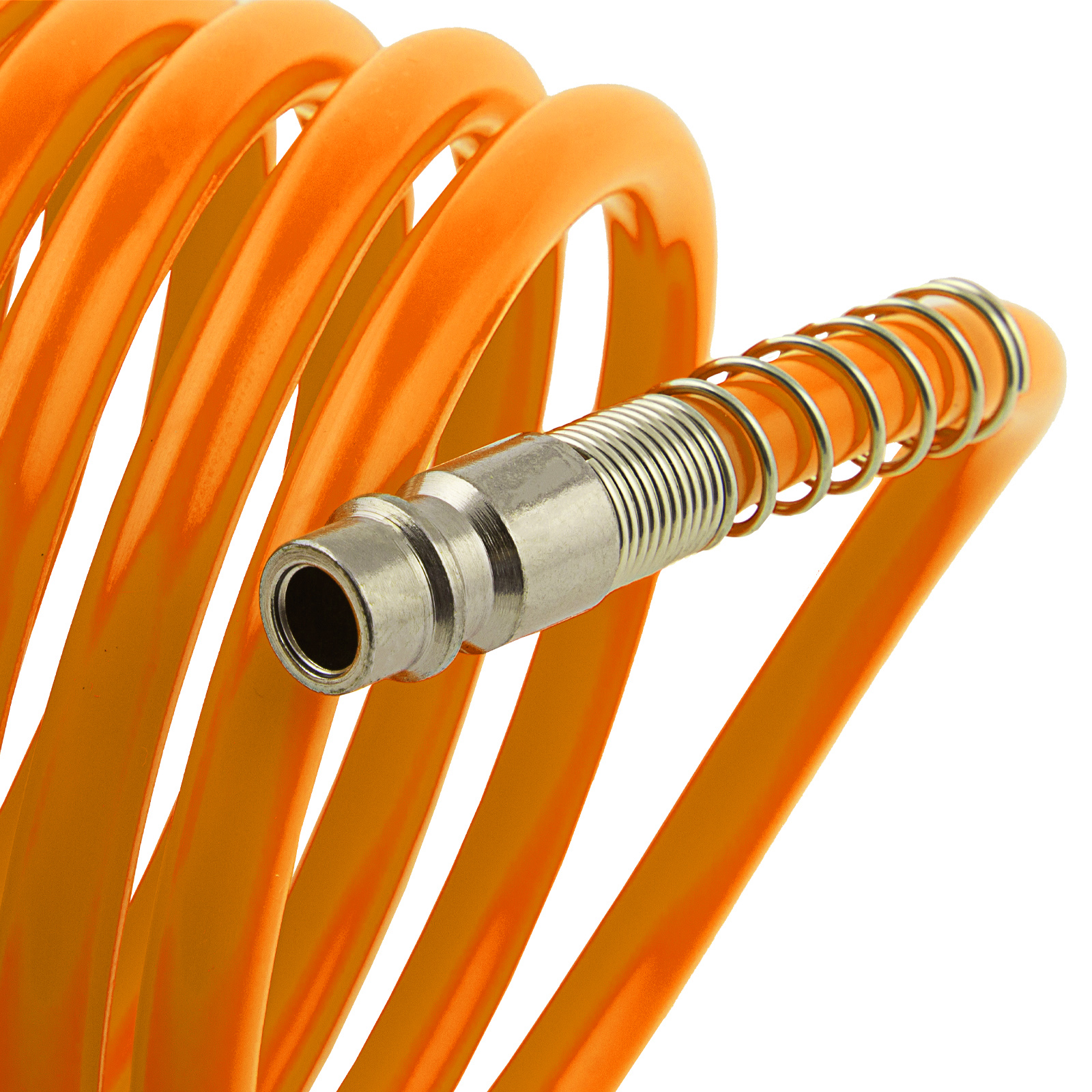 - Удобное использование — спиральный шланг не перегибается и не нуждается в скручивании после окончания работ, а его длины 5 м достаточно для свободного передвижения по рабочей зоне.