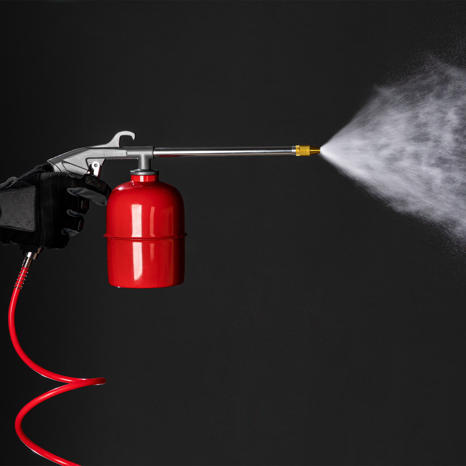 - Прочная и вместительная емкость — стальной бак промывочного пистолета объемом 0,85 л обеспечивает значительный запас жидкости.