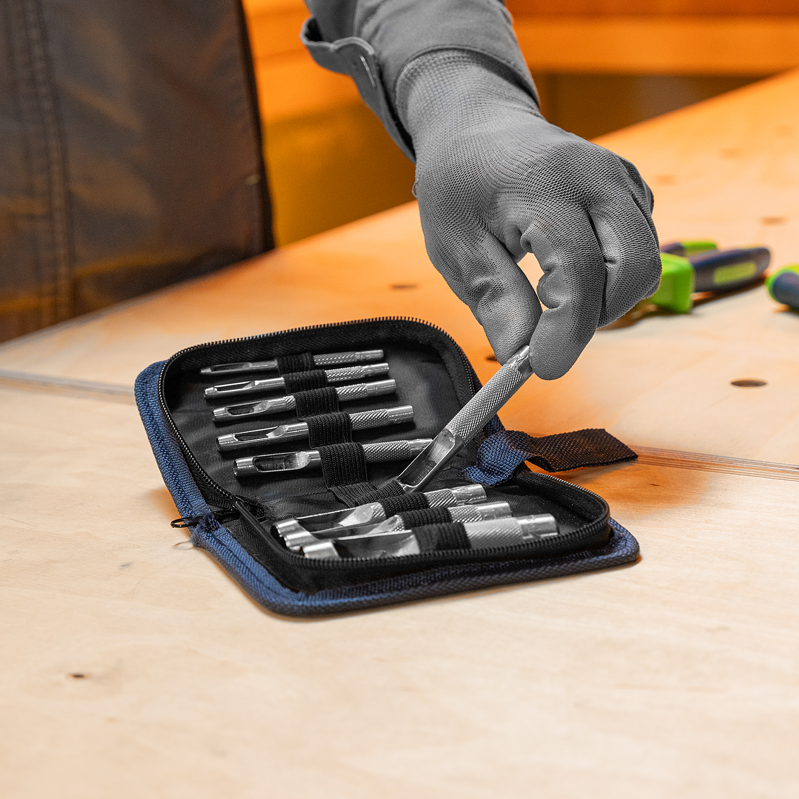 - Все пробойники в комплекте имеют рельефную рукоятку для надежного захвата и комфортной работы.