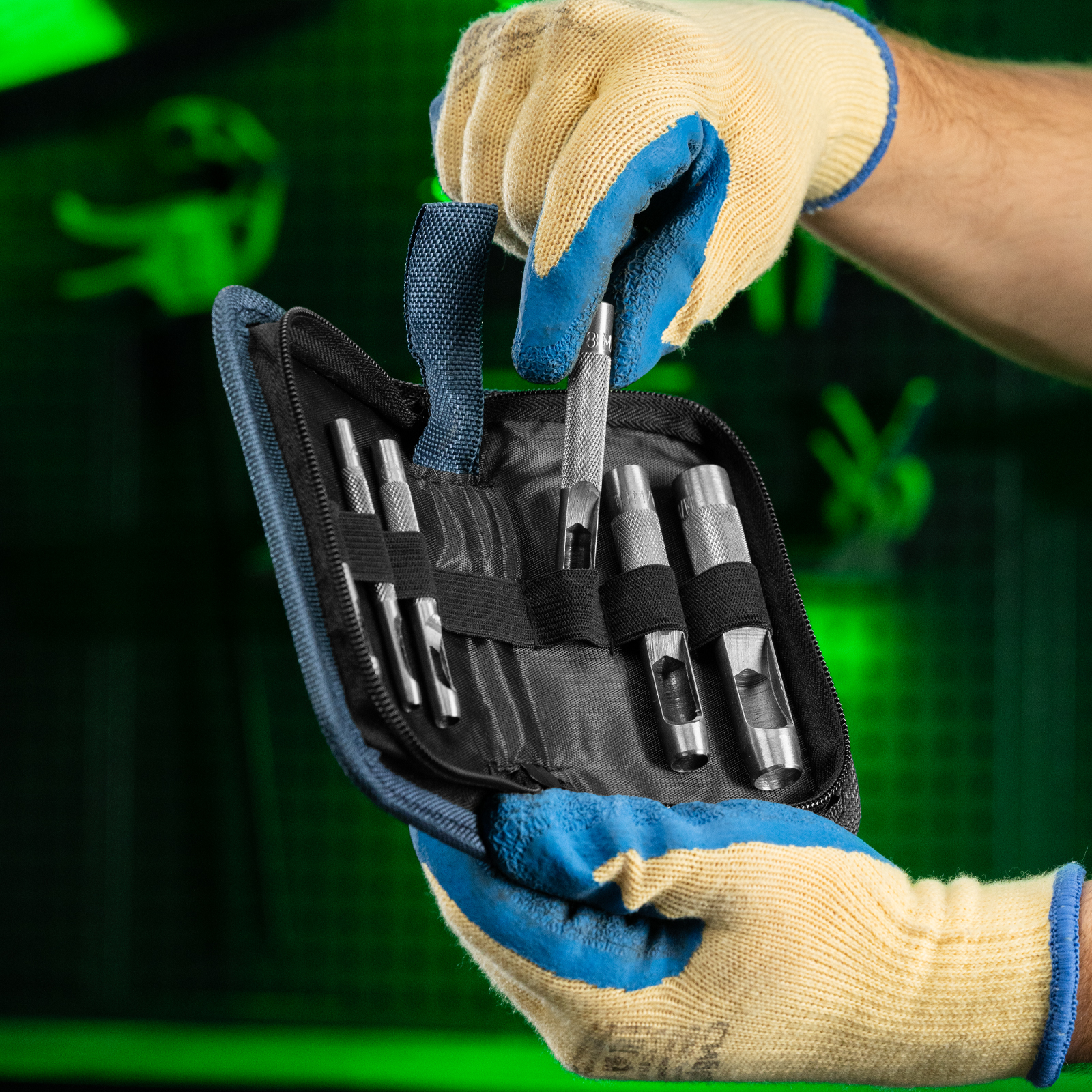 - Все пробойники в комплекте имеют рельефную рукоятку для надежного захвата и комфортной работы.