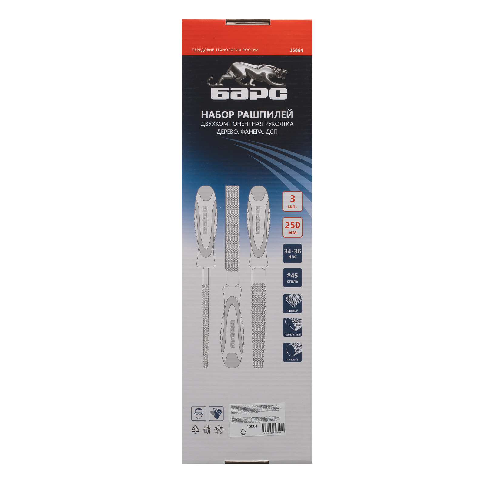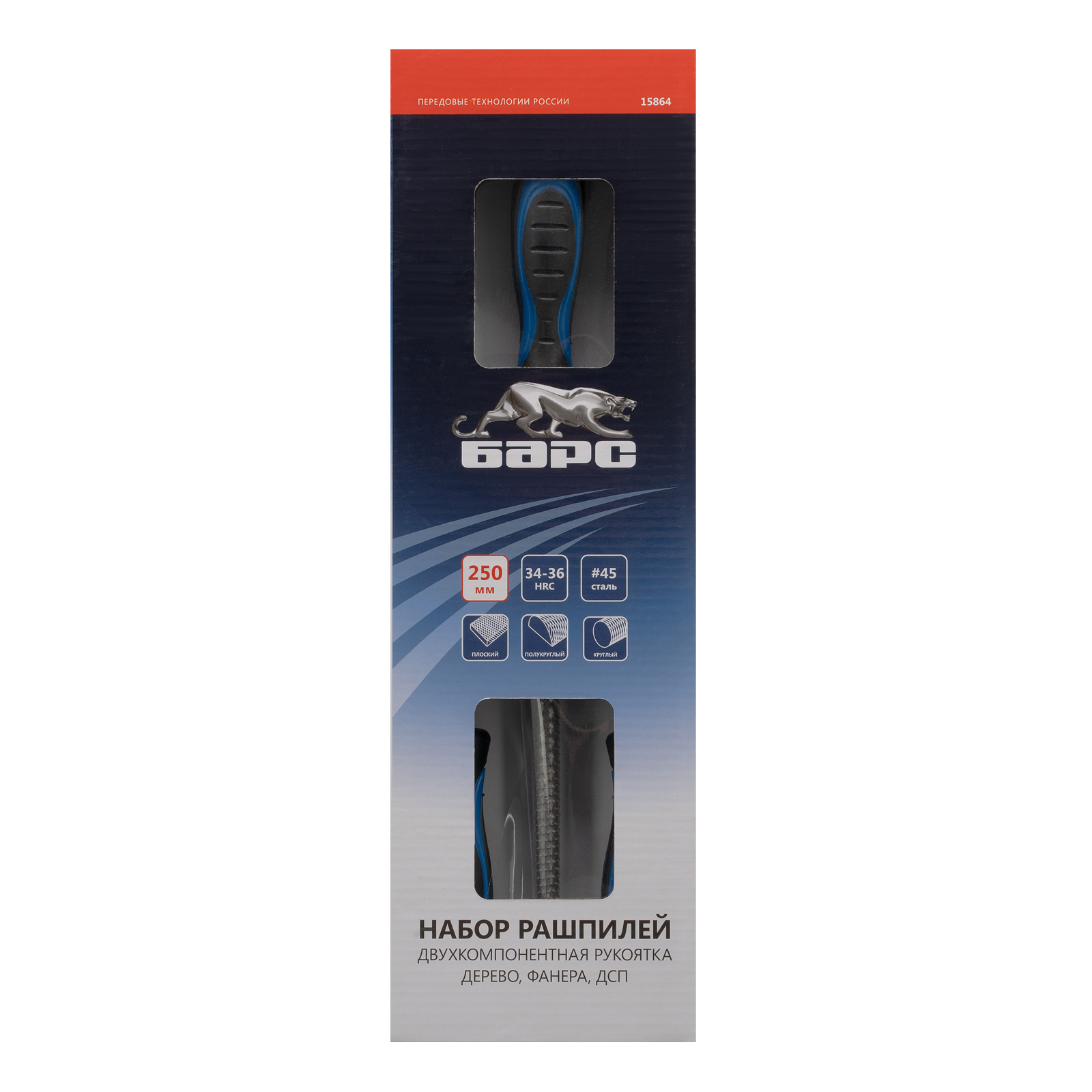 Набор рашпилей 250 мм, 3 шт, двухкомпонентная рукоятка Барс