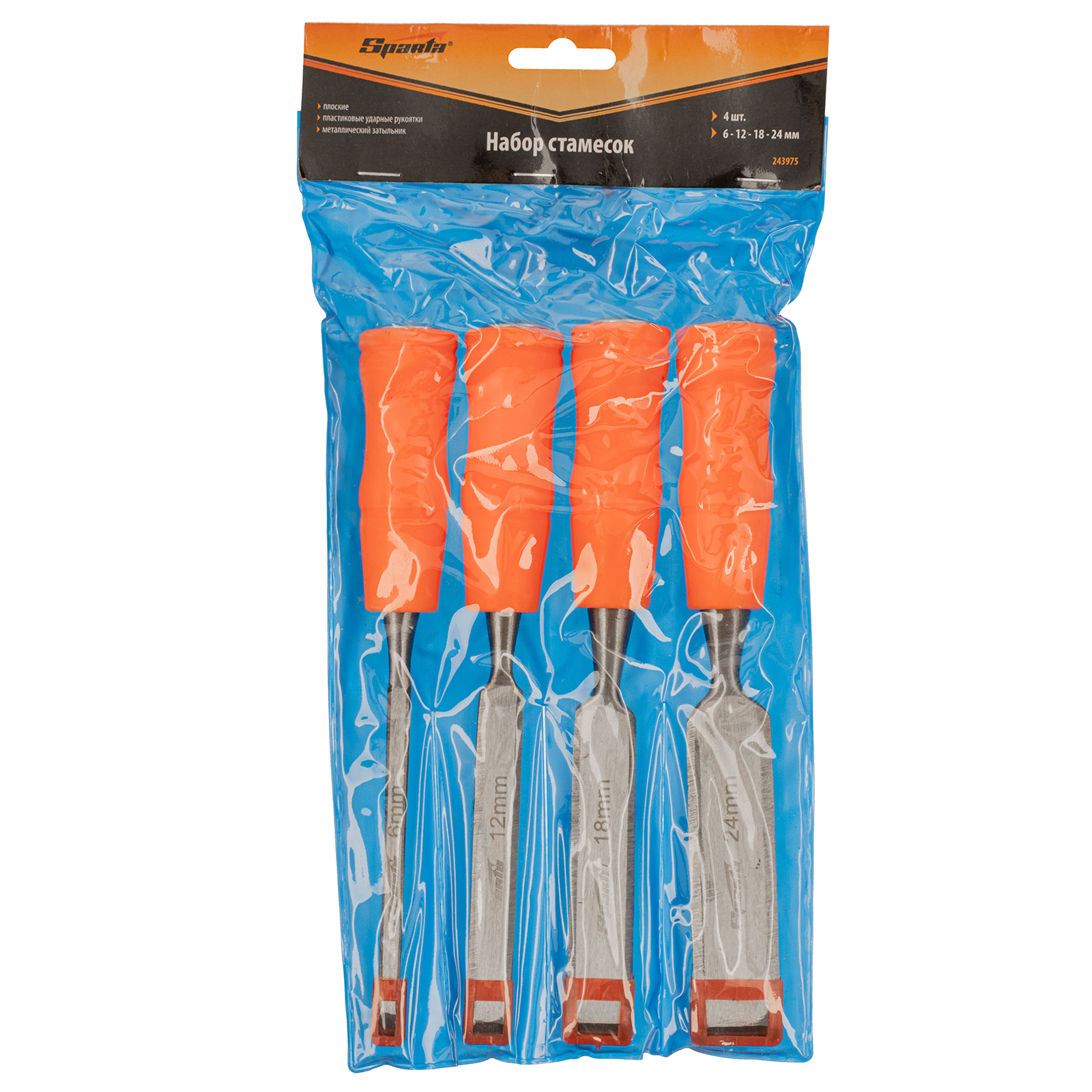 Набор стамесок 4 шт, 6-12-18-24 мм, плоские, пластиковые ударные рукоятки Sparta в Казани
