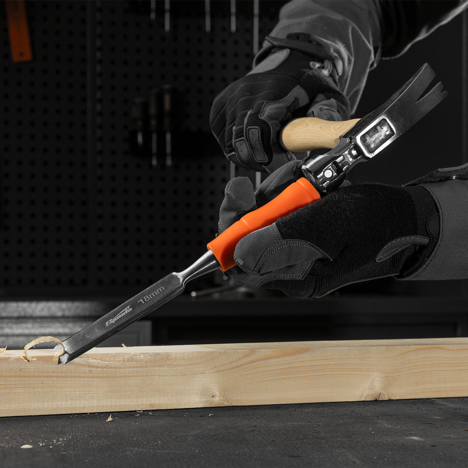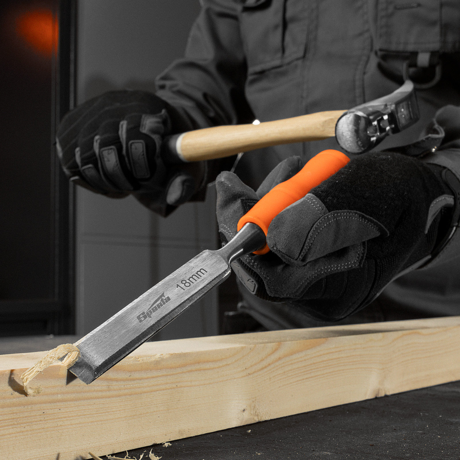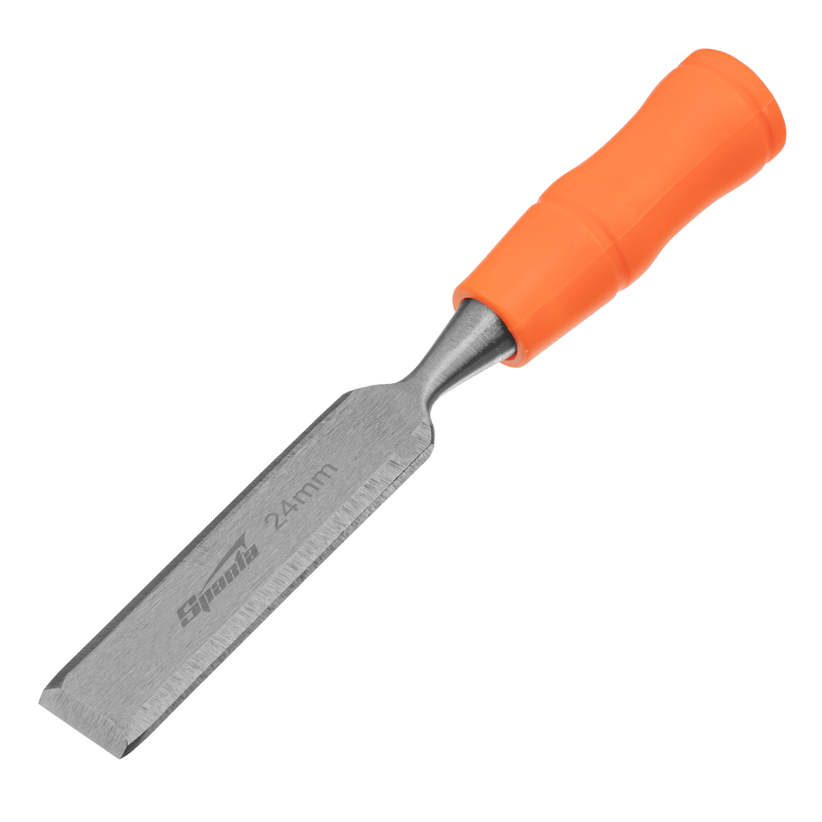 Набор Sparta 243975 из 4 плоских стамесок с пластиковыми ударными рукоятками, с полотнами шириной 6, 12, 18 и 24 мм, используется для работы по дереву — выборки пазов и углублений различной ширины, снятия фасок, зачистки поверхностей. Стамески выдерживают удары киянкой или молотком, т. к. металлический затыльник предотвращает деформацию рукоятки. Набор подойдет столяру, плотнику, мебельщику, а также домашнему мастеру.