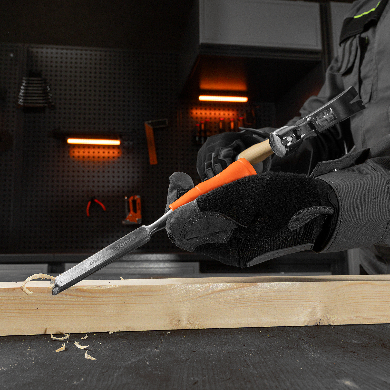 - Высокий ресурс — стамески закалены до твердости 58-63 HRC (2/3 длины рабочей части полотна) и долго сохраняют режущую способность.