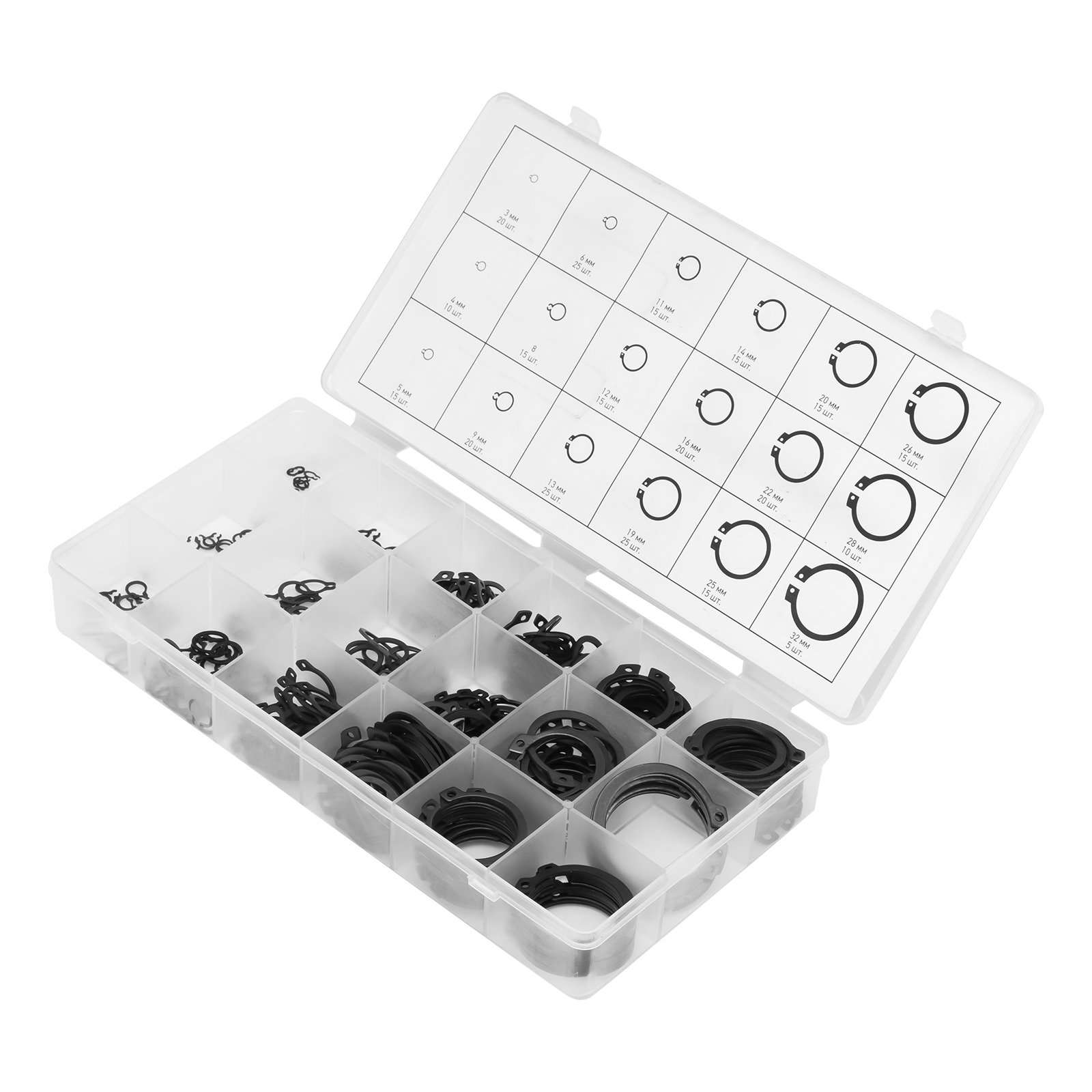 Пластиковый кейс- 1 штСтопорные кольца: 3 мм - 20 шт4 мм - 10 шт5 мм - 15 шт6 мм - 25 шт8 мм - 15 шт9 мм - 20 шт11 мм - 15 шт12 мм - 15 шт13 мм - 25 шт14 мм - 15 шт16 мм - 20 шт19 мм - 25 шт20 мм - 15 шт22 мм - 20 шт25 |