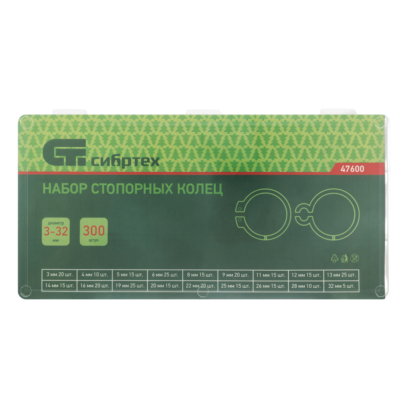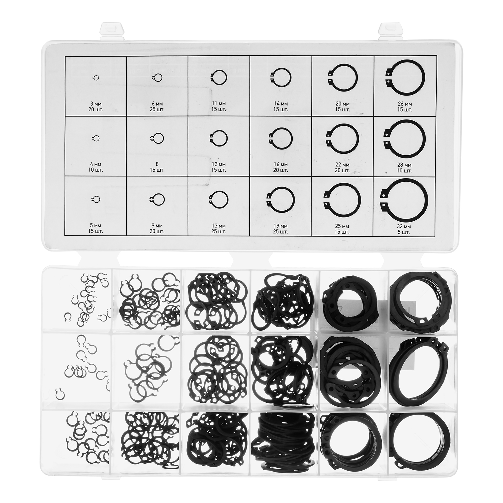 Набор стопорных колец, D 3-32 мм, 300 предметов Сибртех