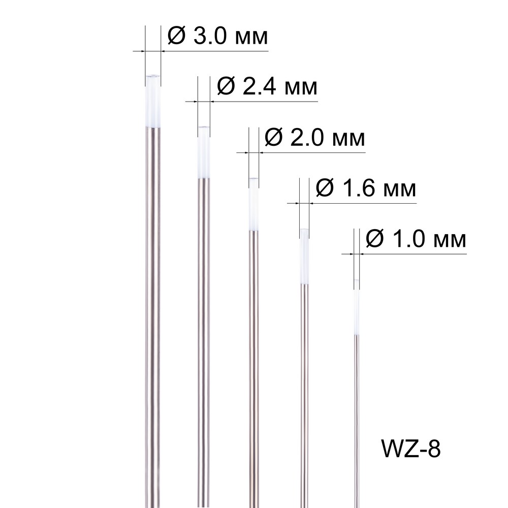 Набор вольфрамовых электродов WZ-8 д.1,0 - 3,0 (5шт.)