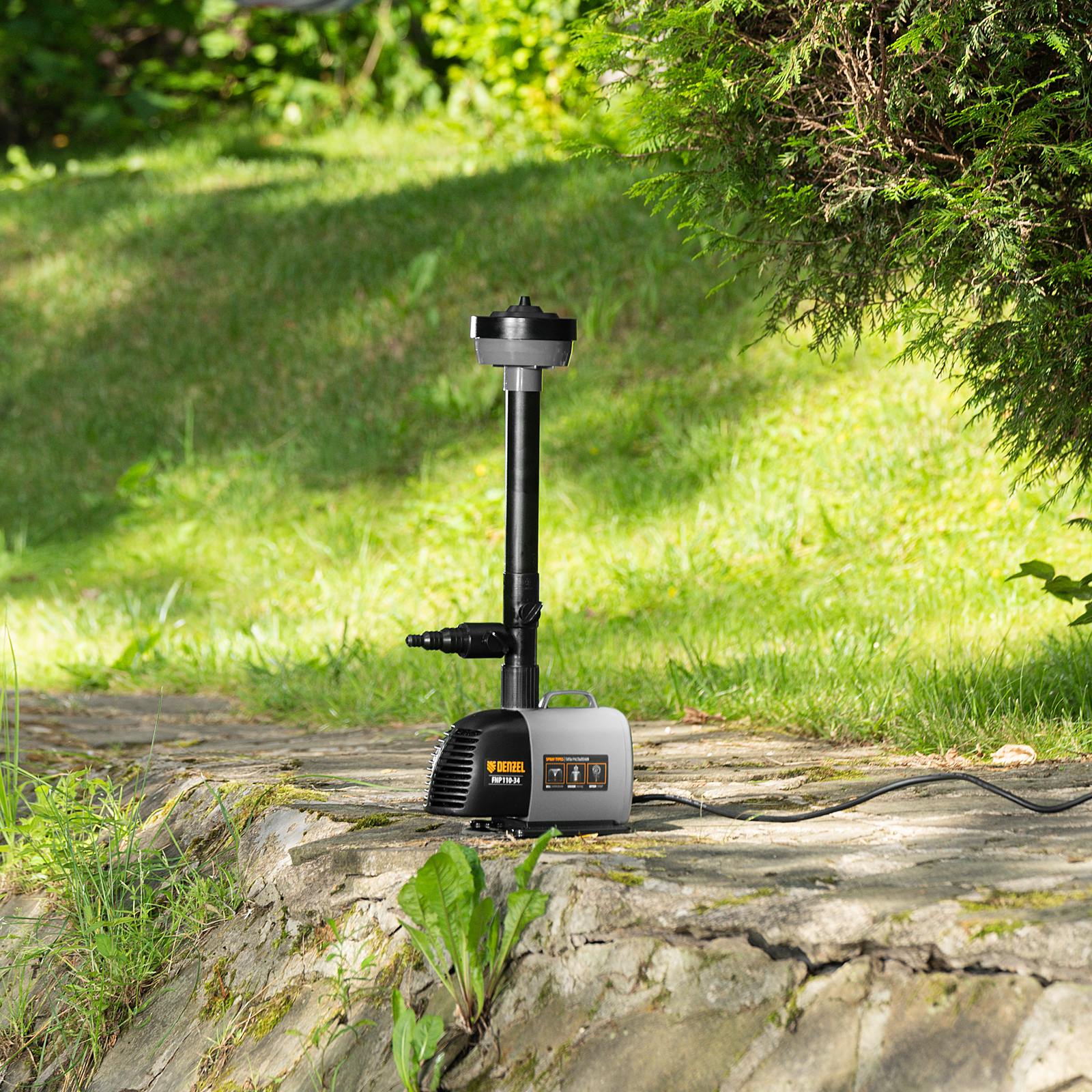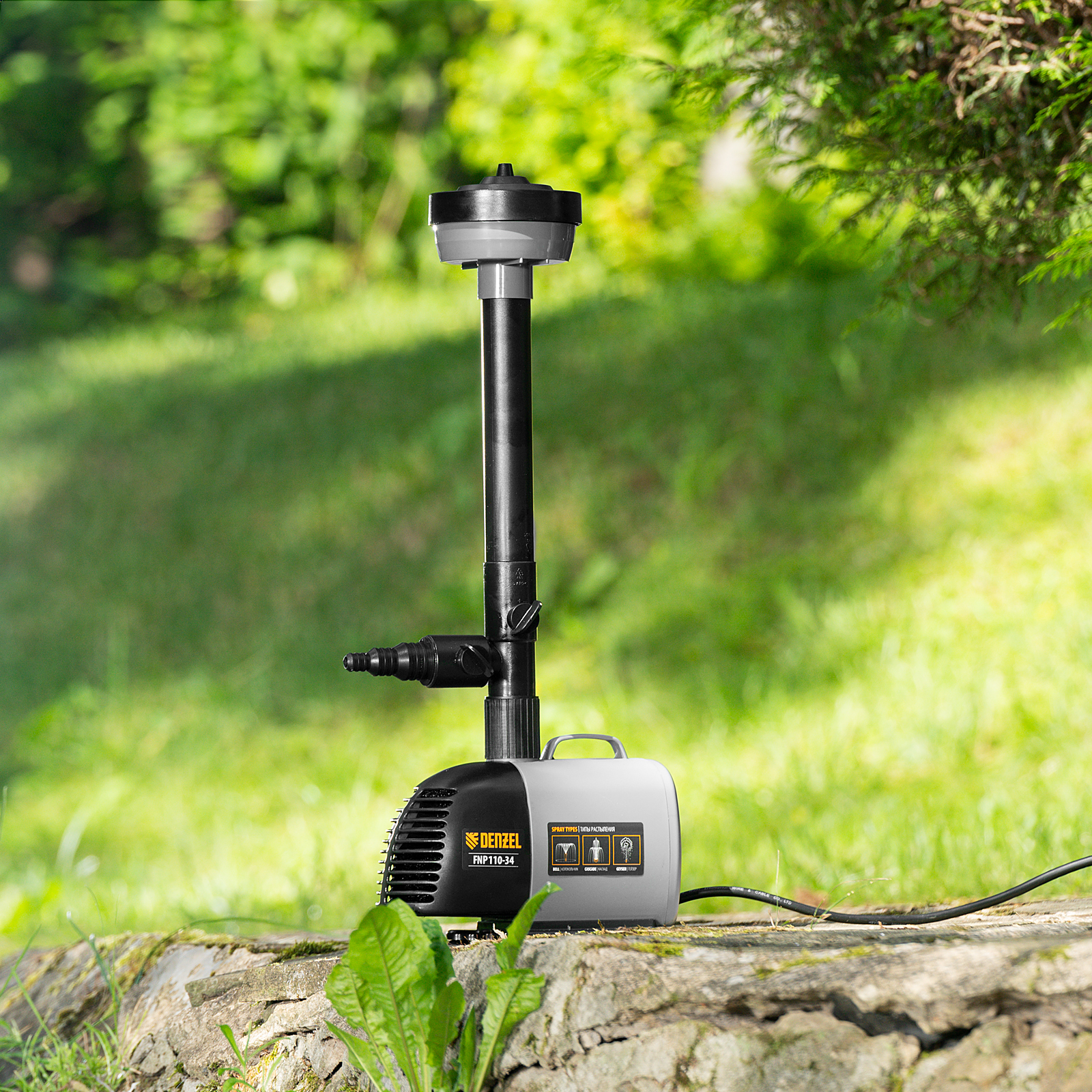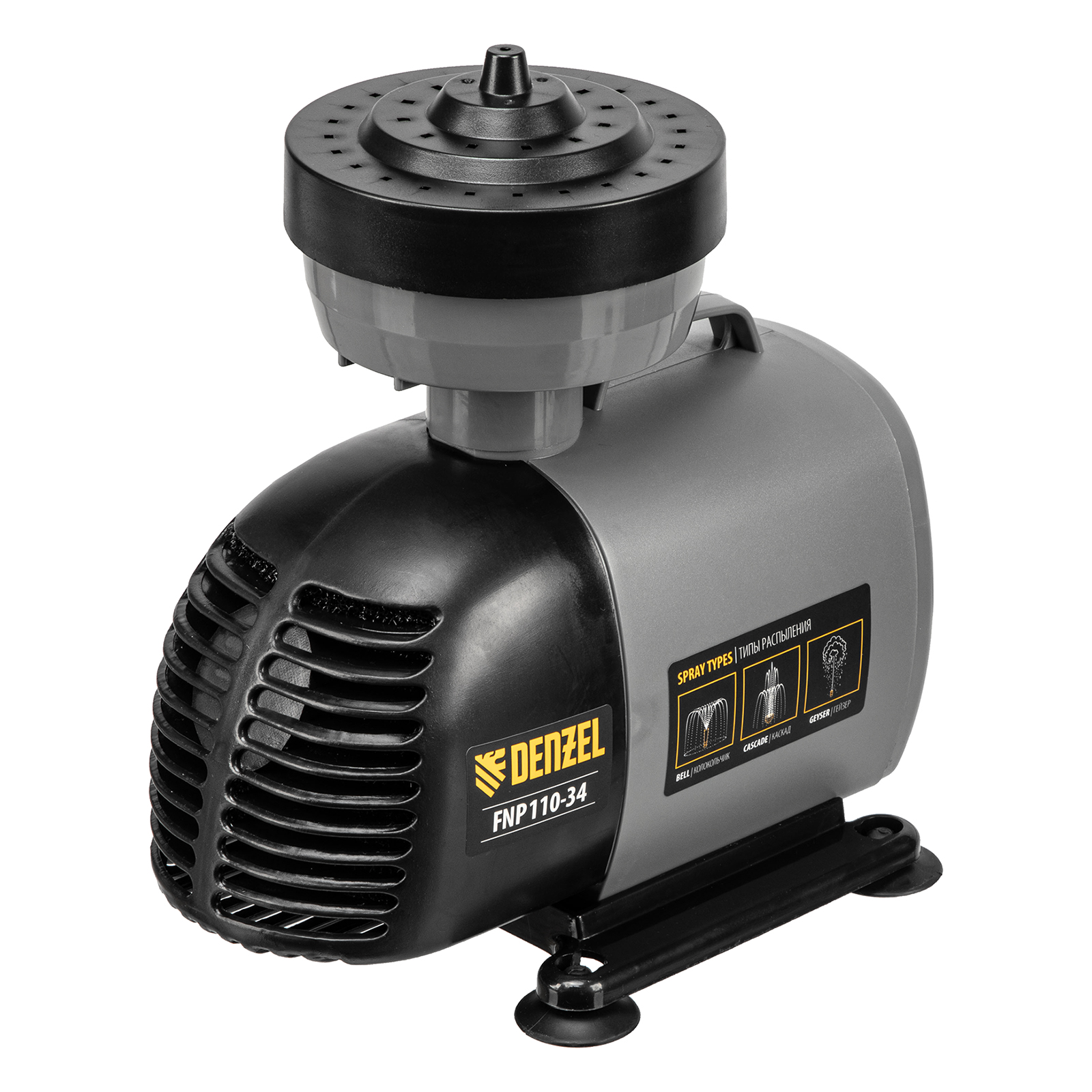 Насос фонтанный FNP110-34, 112 Вт, подъем 3,4 м, 3400 л/ч, колокольчик/каскад/гейзер Denzel