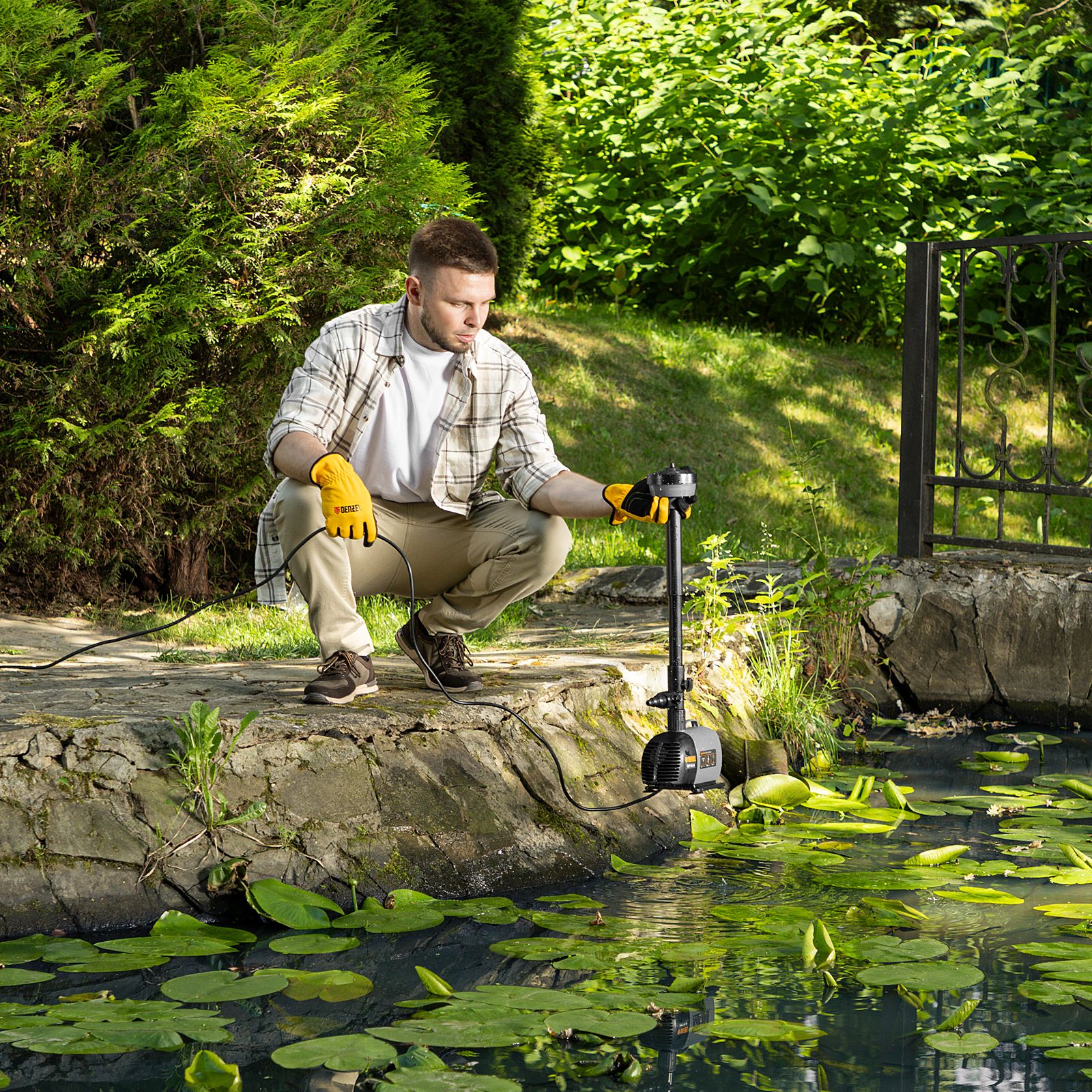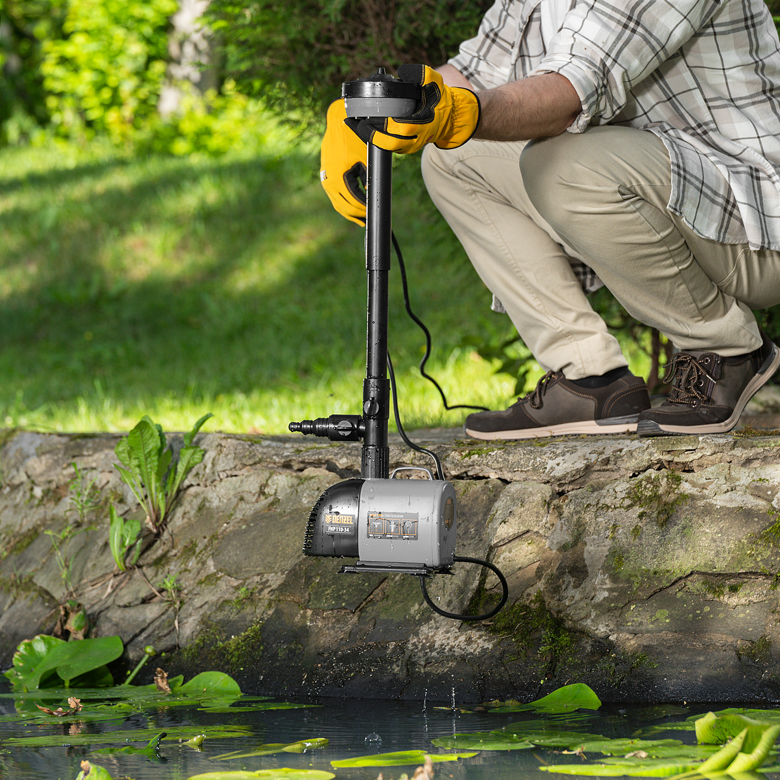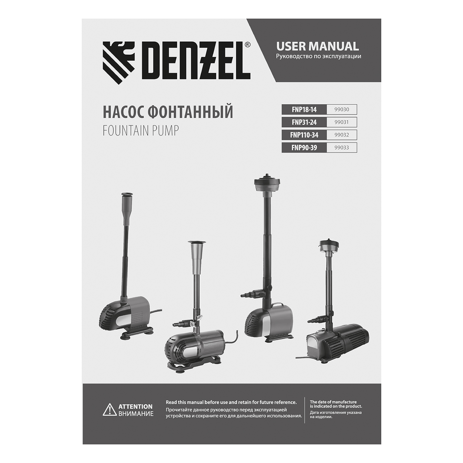 Насос фонтанный FNP110-34, 112 Вт, подъем 3,4 м, 3400 л/ч, колокольчик/каскад/гейзер Denzel