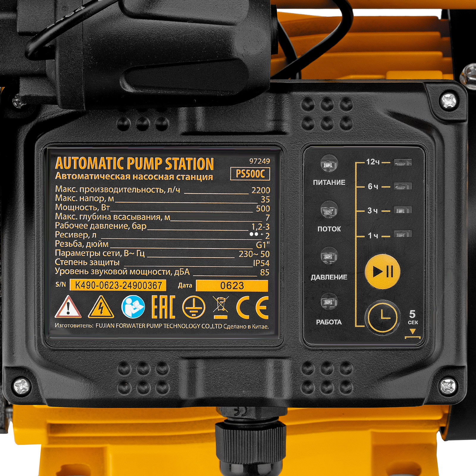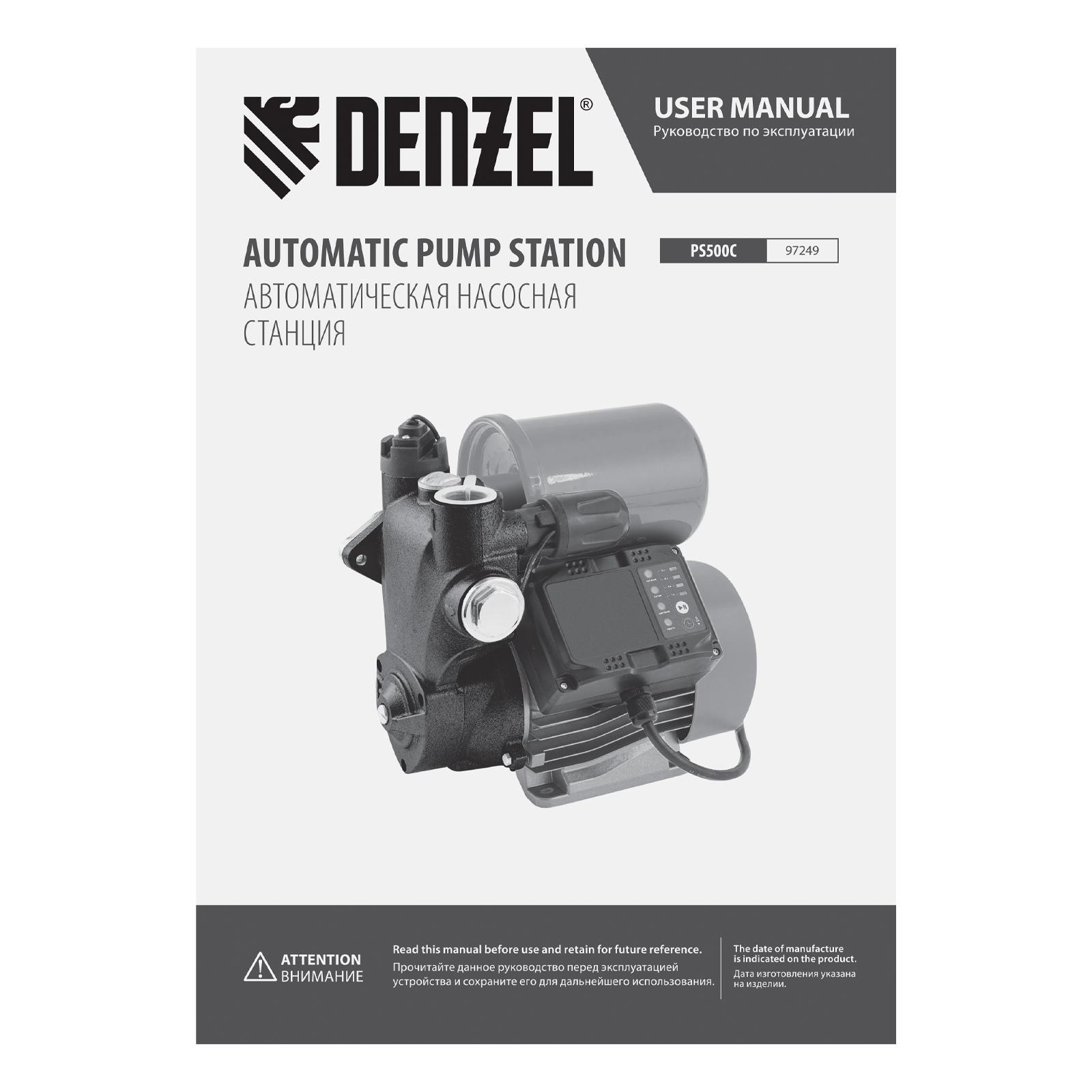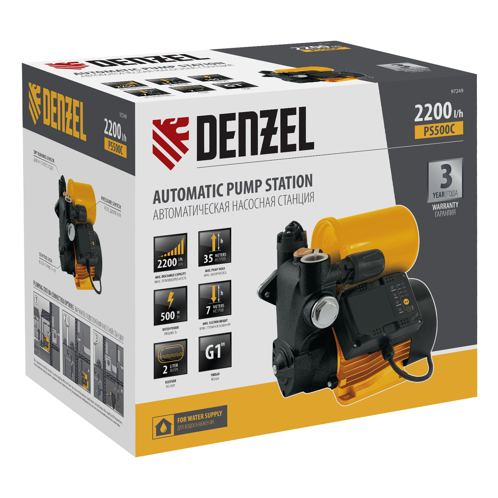 Насосная станция PS500C, 500 Вт, напор 35 м, 2200 л/ч, ресивер 2 л, блок управления Denzel в Казани