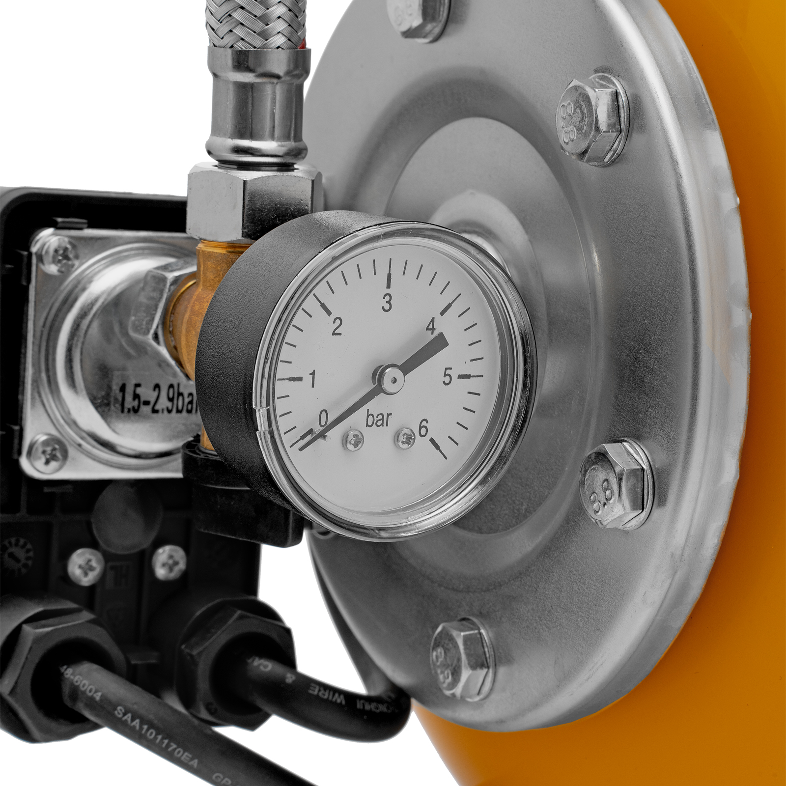 - Автоматизация работы — реле контролирует показатели давления в диапазоне 1,5–3 бар, не допуская его превышения и сильного падения, что обеспечивает оптимальную частоту включений насосной станции.
