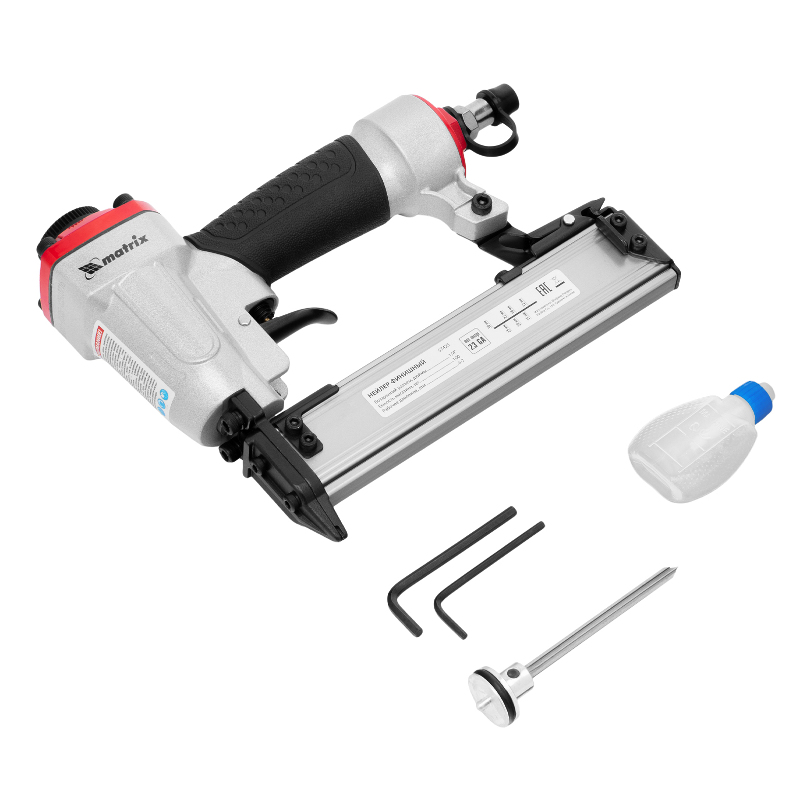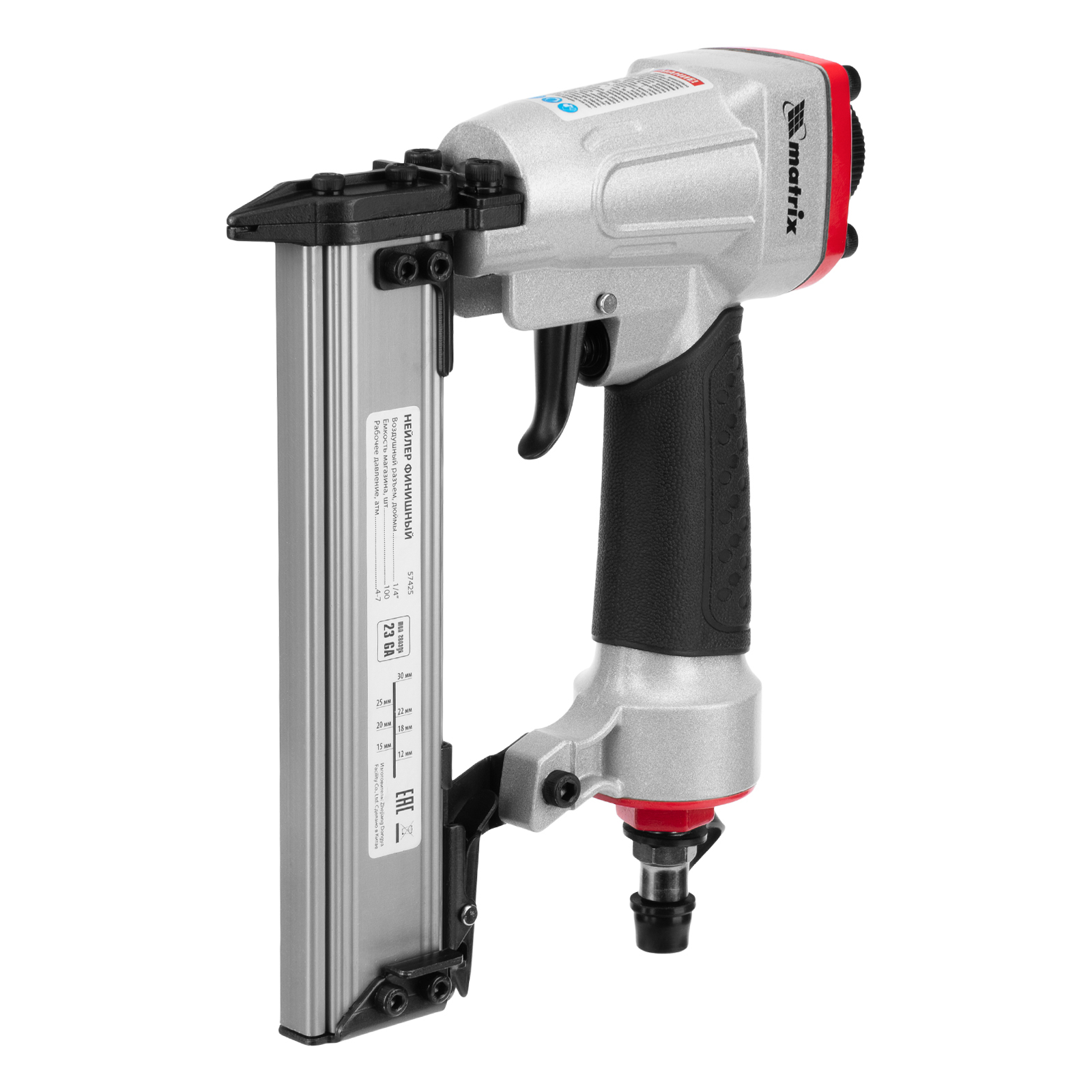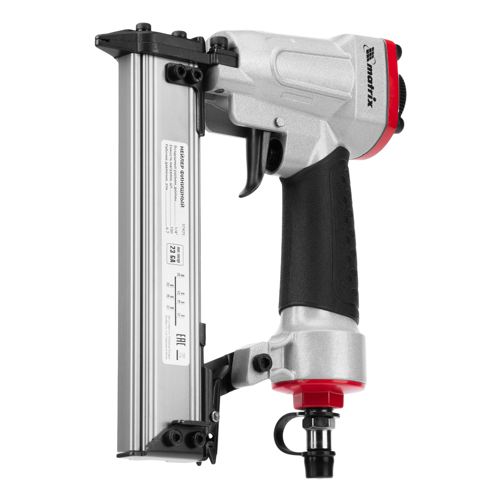 Нейлер финишный, шпилькозабивной пистолет, пневматический, гвоздь 23GA D 0.64 мм длина 10-30 мм Matrix