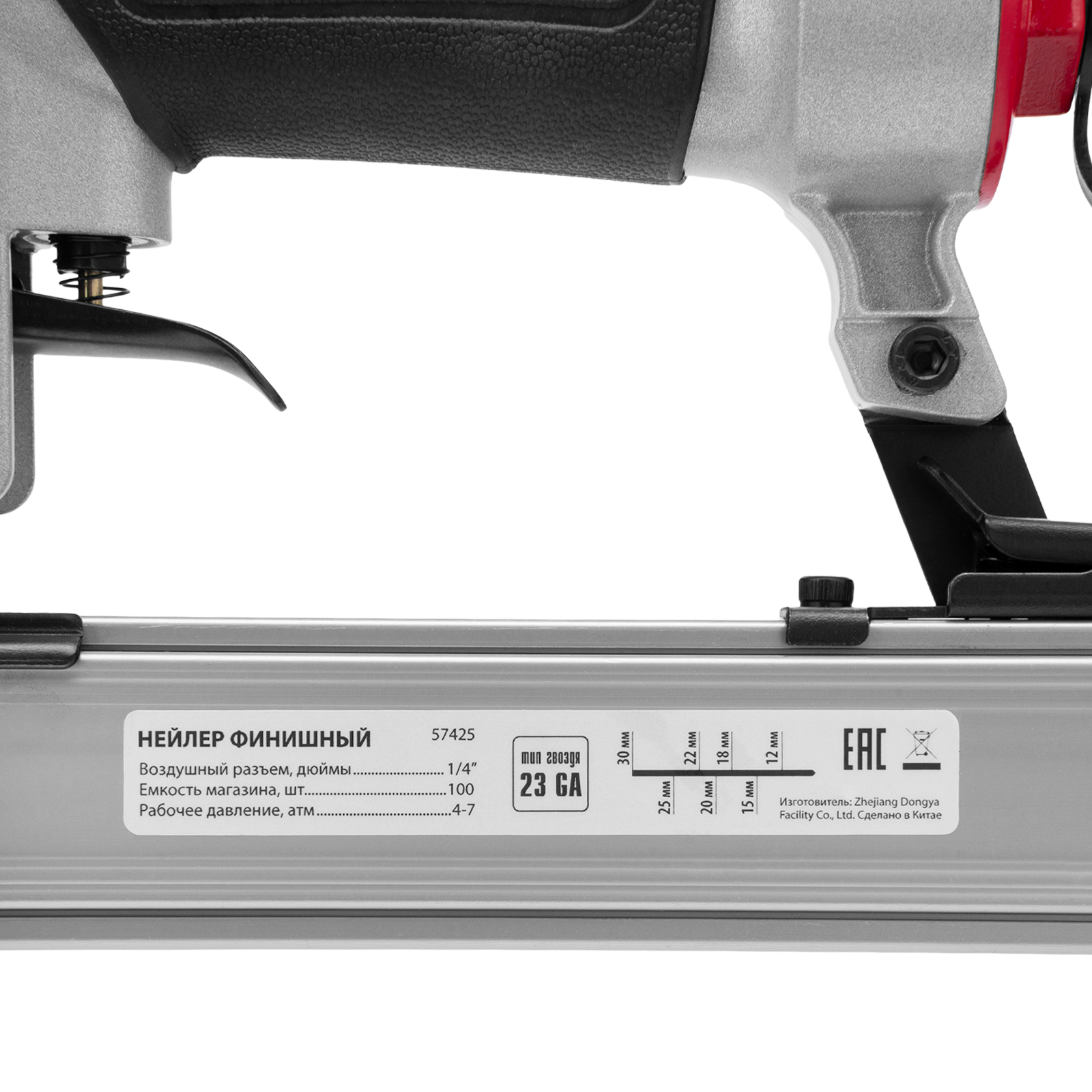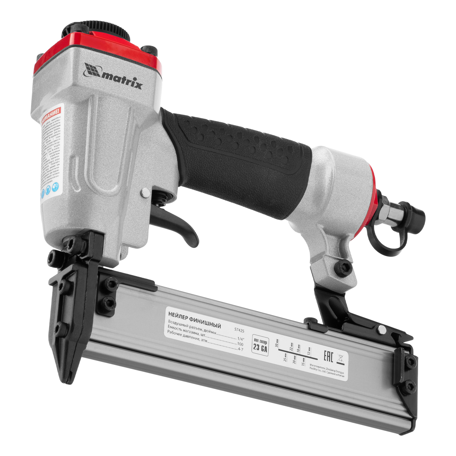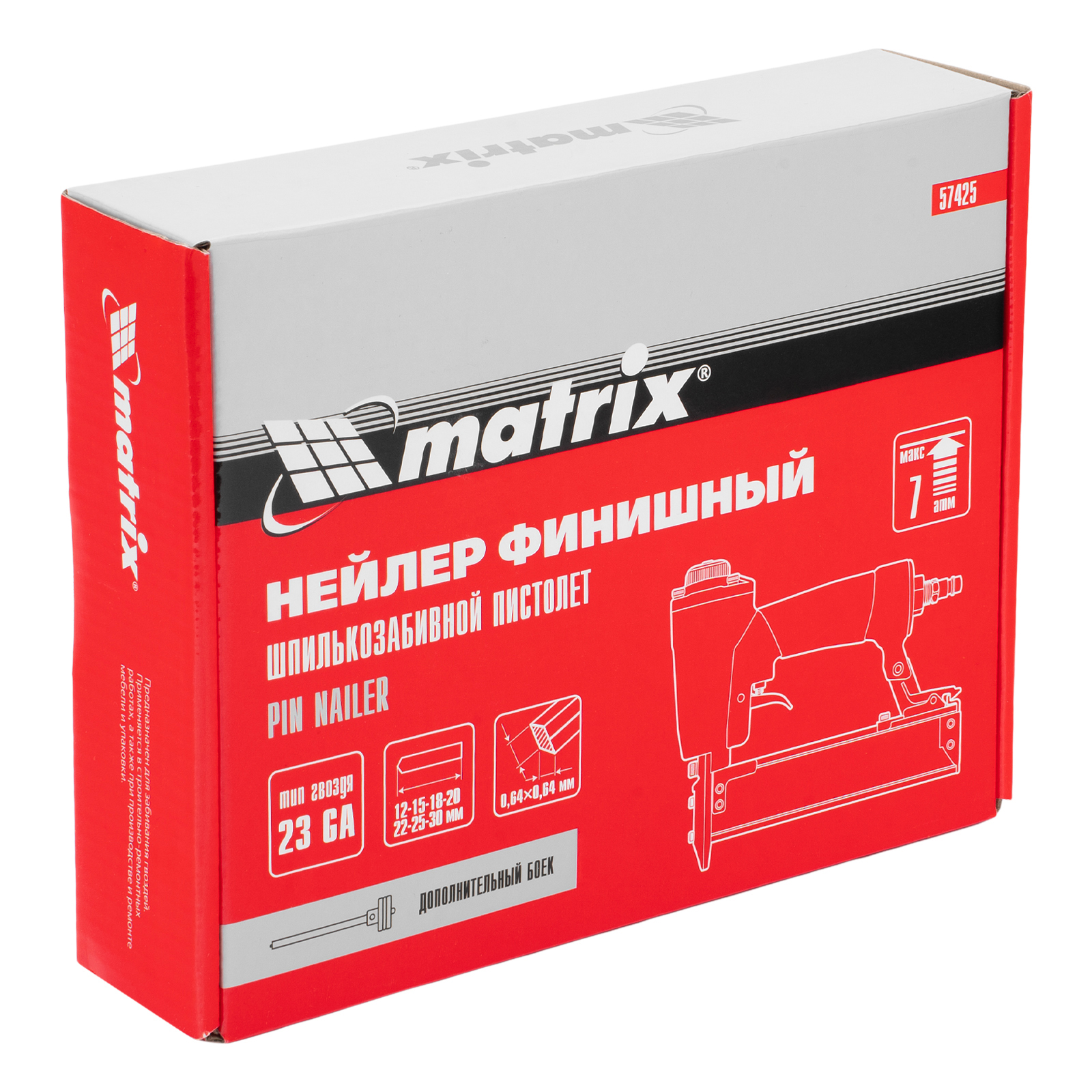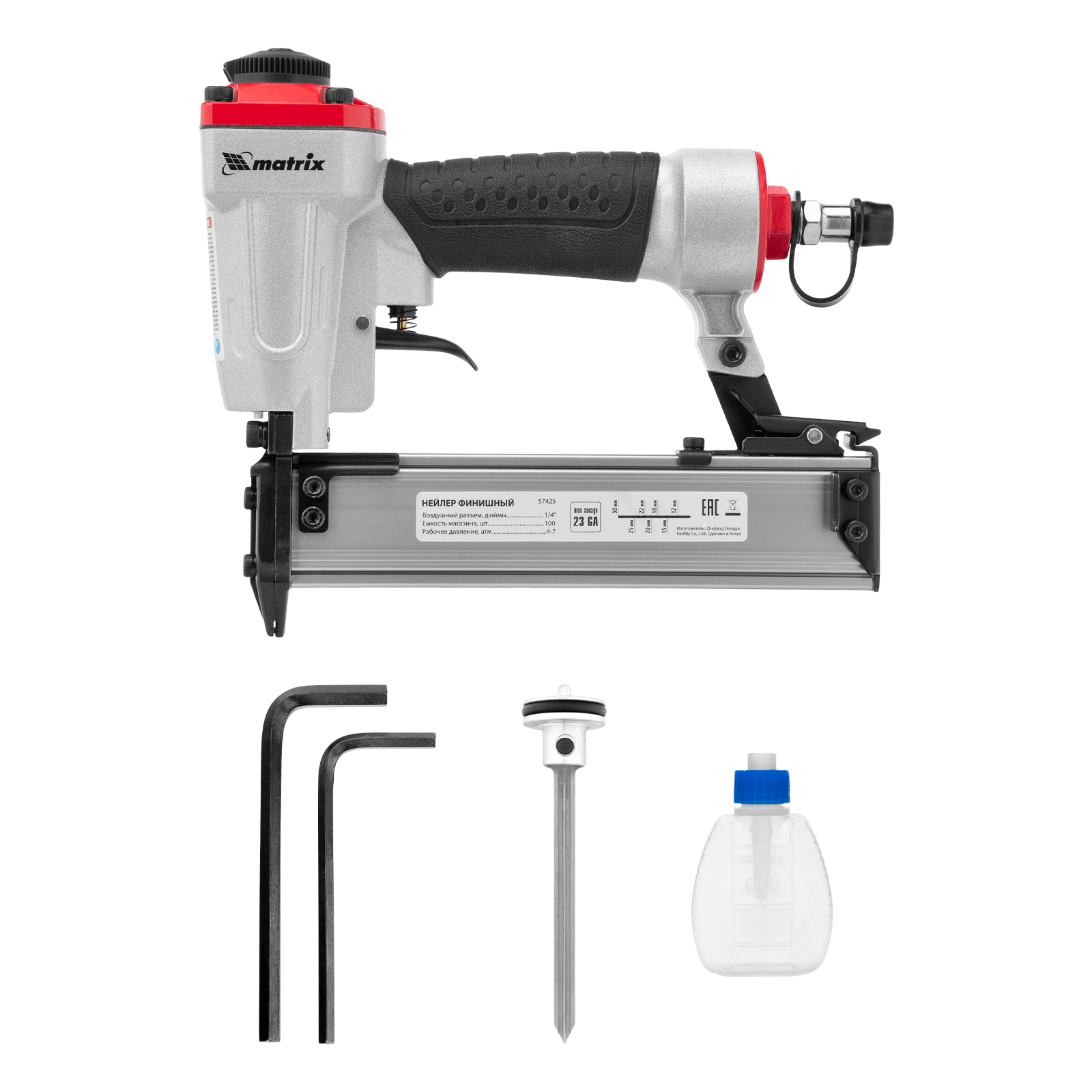 Нейлер финишный, шпилькозабивной пистолет, пневматический, гвоздь 23GA D 0.64 мм длина 10-30 мм Matrix