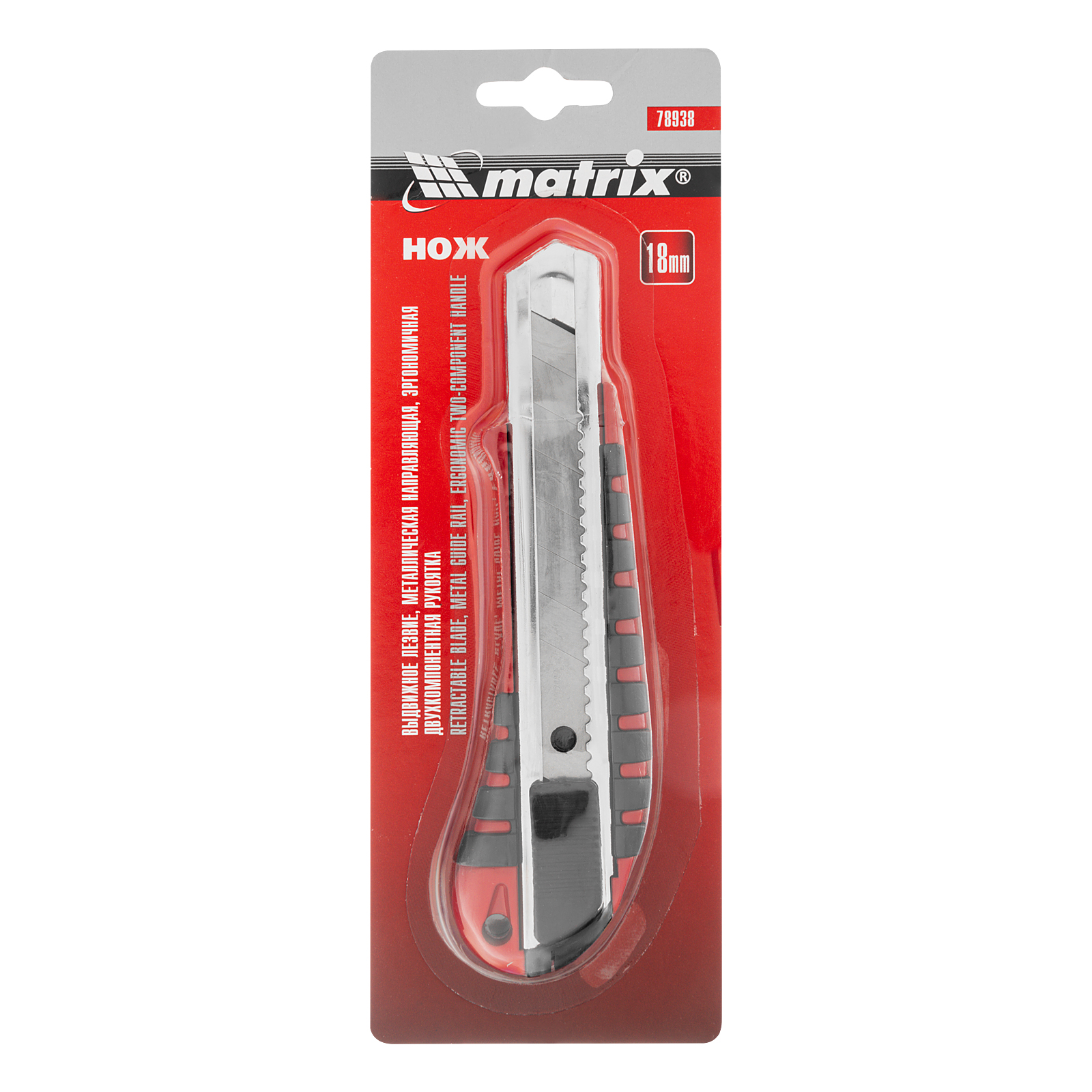 Нож, 18 мм, выдвижное лезвие металлическая направляющая, эргономичная двухкомпонентная рукоятка Matrix