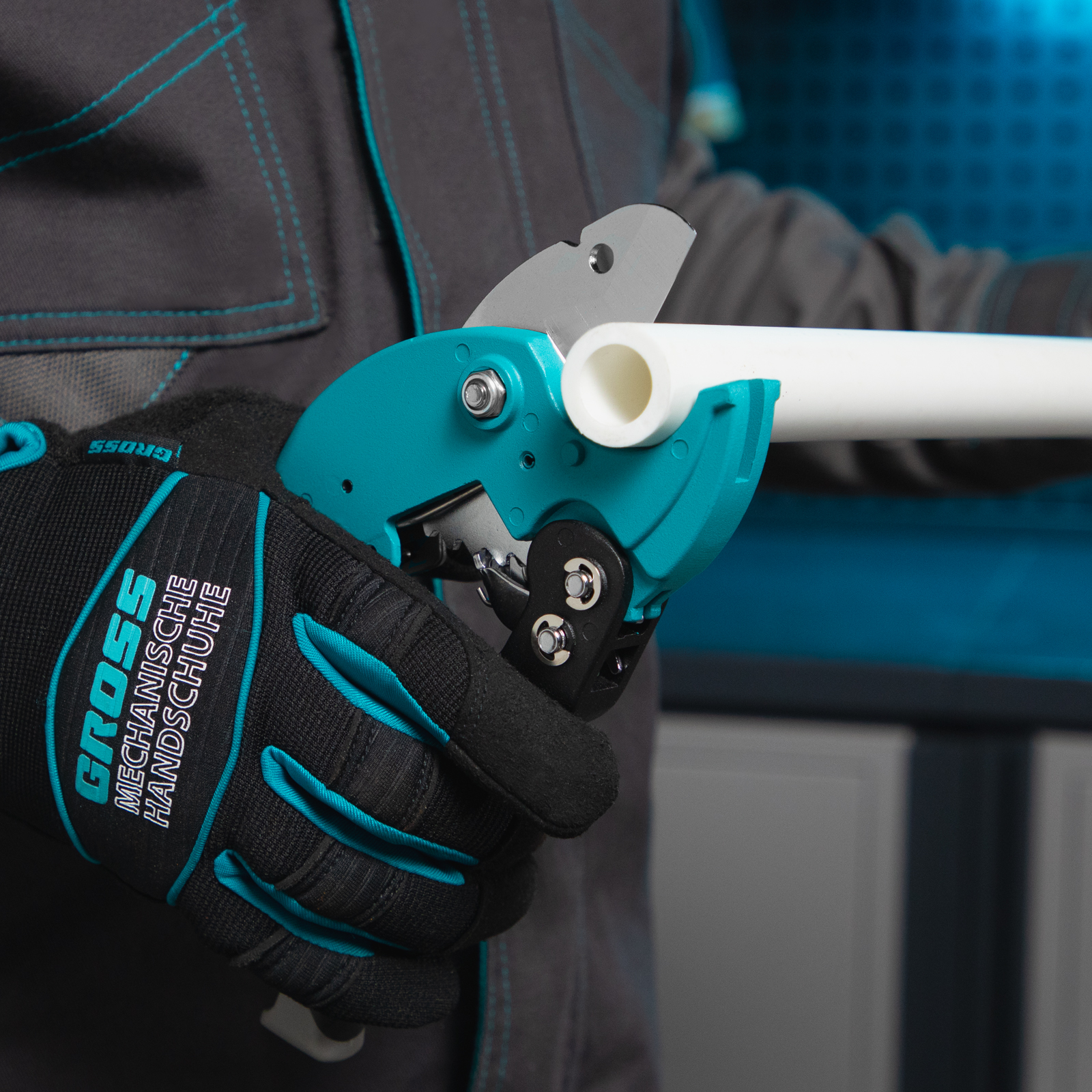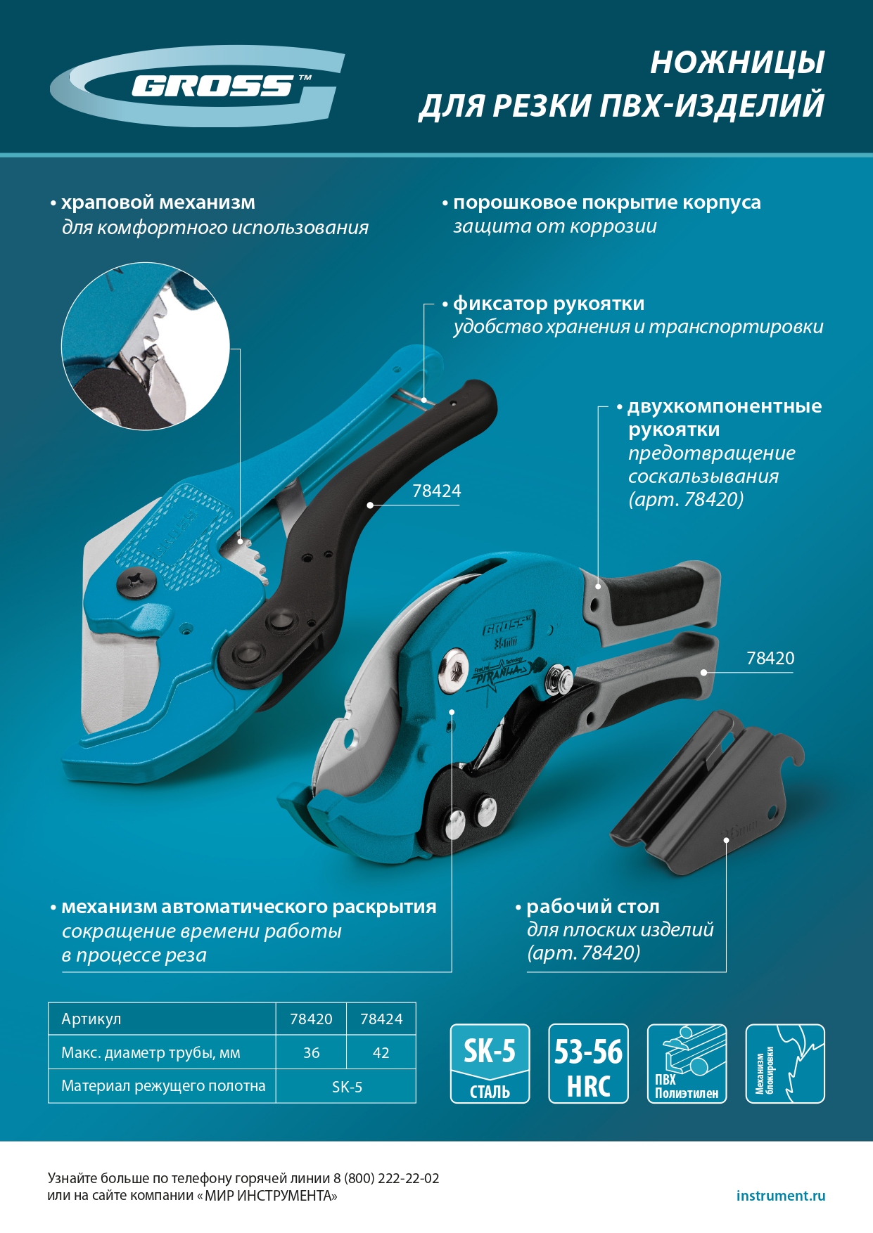Ножницы для резки изделий из ПВХ, D до 36 мм, двухкомпонентные рукоятки, рабочий стол для плоских изделий Gross