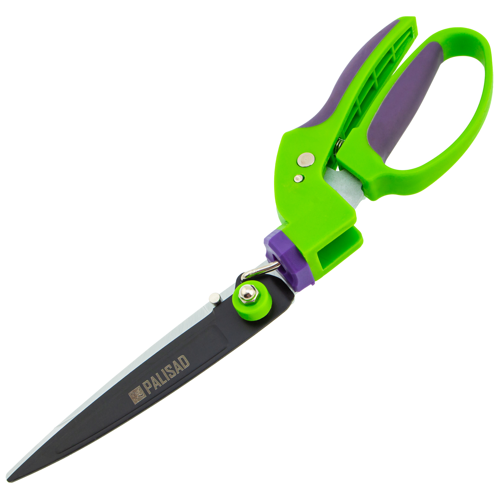 Газонные ножницы Palisad 60574 длиной 350 мм, с пластиковыми обрезиненными рукоятками, — инструмент для подстригания травы вдоль кромок газонов, дорожек, вдоль бордюров, ограждений, возле кустов. Лезвия поворачиваются на 180°, что облегчает работу в труднодоступных местах. Гарда на нижней рукоятке защищает пальцы от царапин, проколов и ссадин. Механизм автооткрывания препятствует заеданию лезвий при стрижке жесткой травы. Ножницы помогут привести в порядок дачный участок или придомовую территорию.