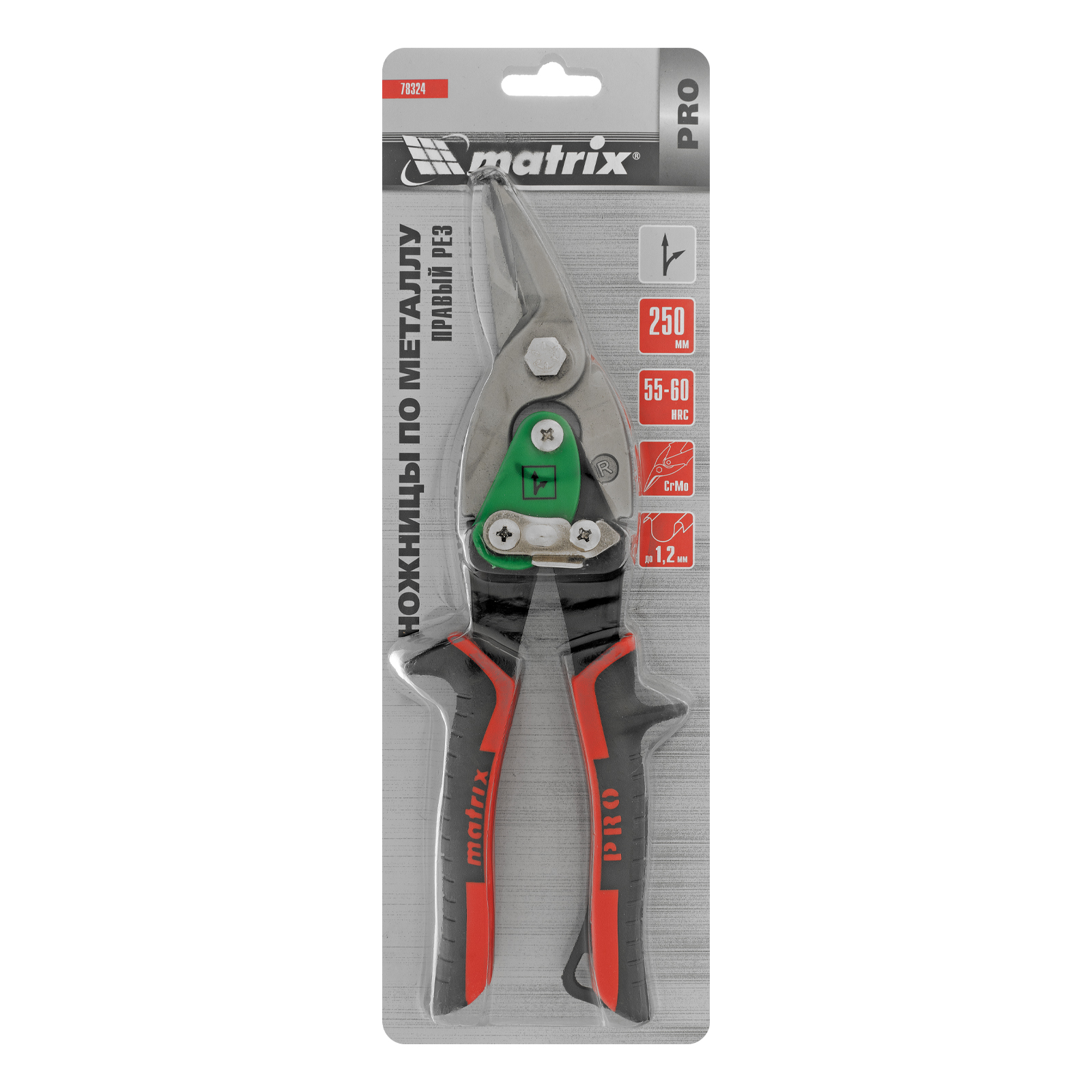 Ножницы по металлу, 250 мм, правый рез, сталь CRMO, двухкомпонентные рукоятки, PRO Matrix