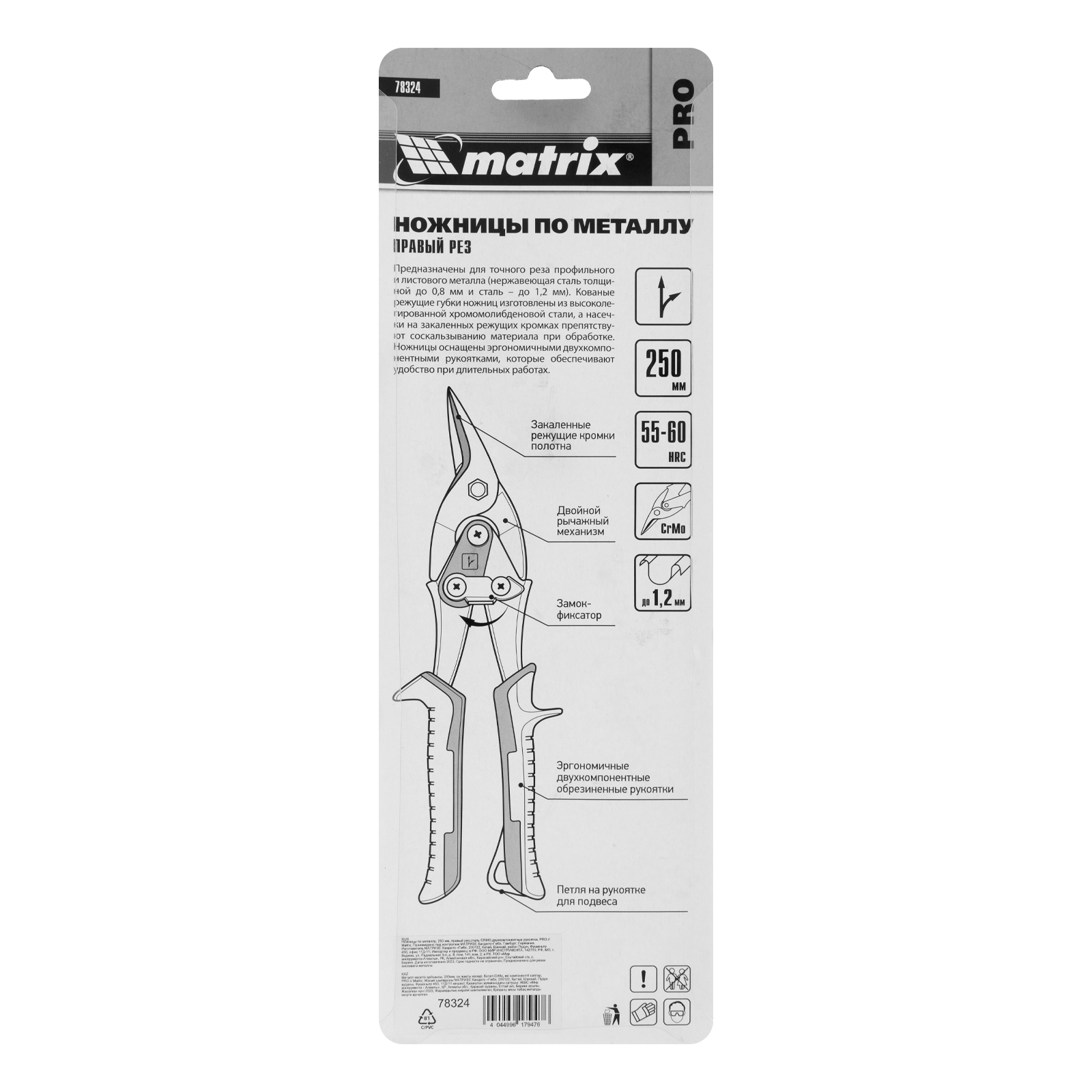 Ножницы по металлу Matrix PRO 78324 длиной 250 мм, с двухкомпонентными рукоятками, предназначены для правого реза листовых и профильных металлических заготовок, в том числе стали толщиной до 1,2 мм и нержавеющей стали толщиной до 0,8 мм. Двойной рычажный механизм позволяет прикладывать значительное усилие при резке толстого материала. Для удобства работы на корпусе имеется маркировка с указанием направления резания. Ножницы будут полезны в профессиональной и домашней мастерской.