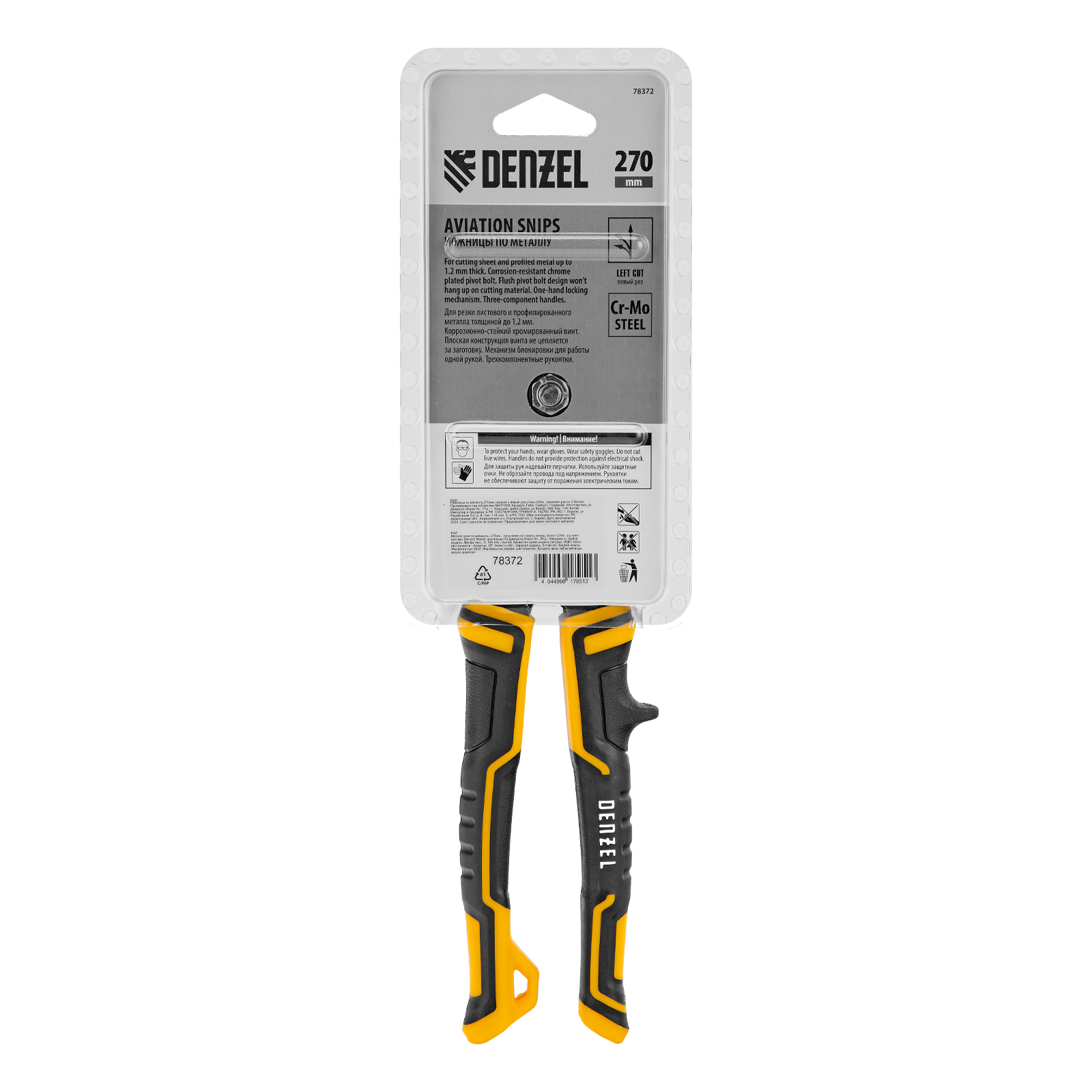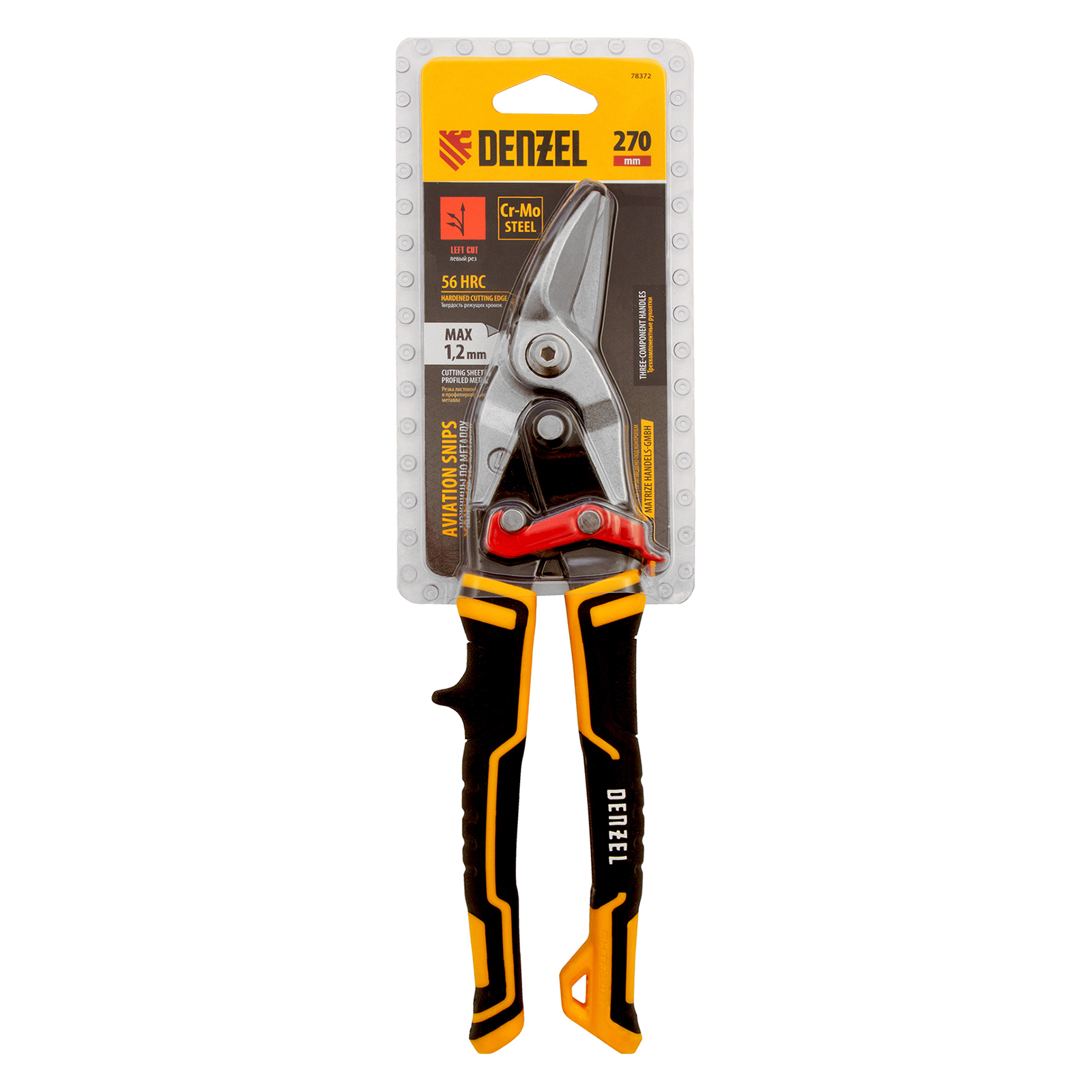 Ножницы по металлу, 270 мм, прямой и левый рез, сталь-СrMo, трехкомпонентные рукоятки Denzel