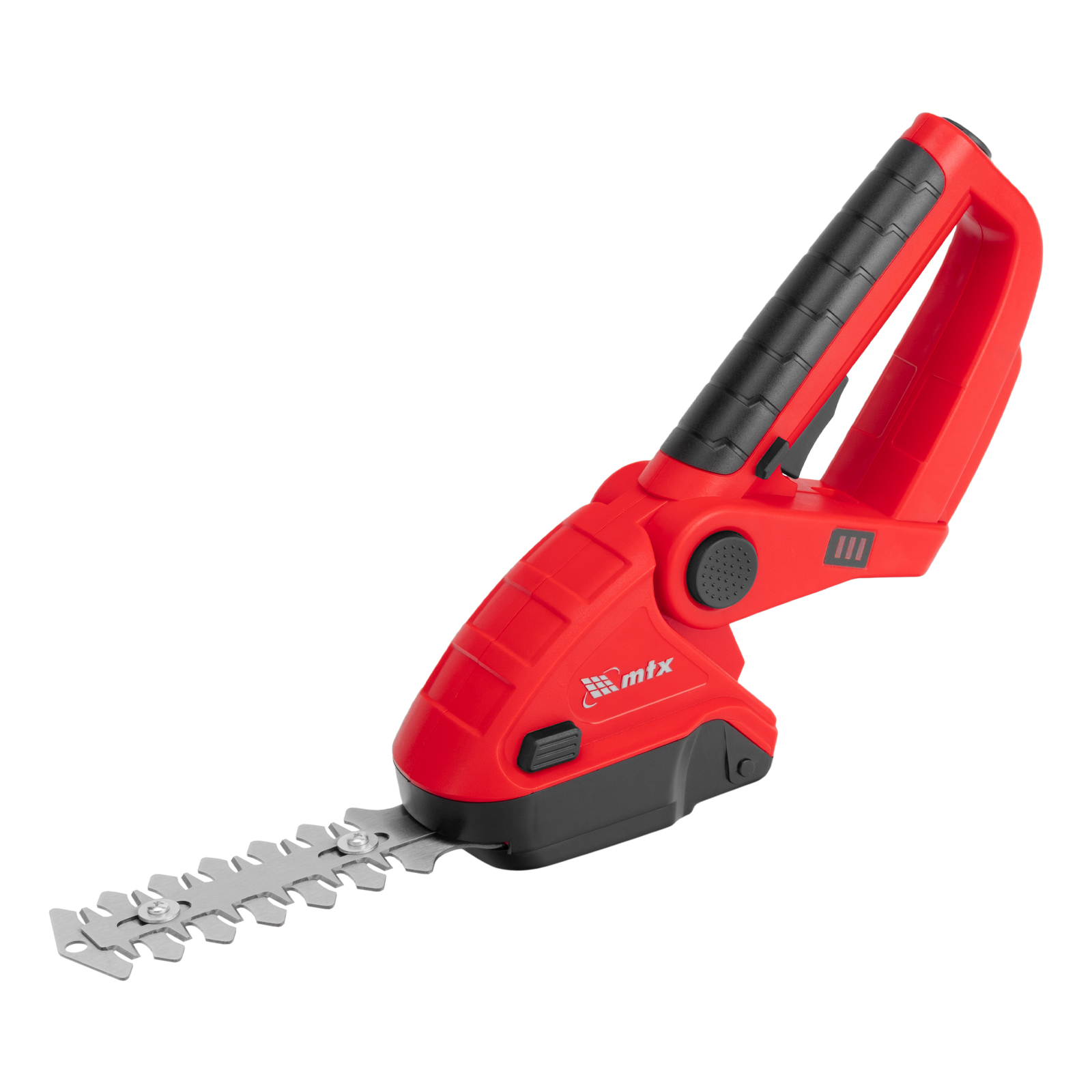 Аккумуляторные ножницы-кусторез MTX GSM-3 59480 предназначены для срезания травы, обрезки кустов и живых веток диаметром до 8 мм, подходят также для ухода за живой изгородью. Ширина среза в режиме ножниц составляет 80 мм, в режиме кустореза — 120 мм, что позволяет эффективно решать поставленные задачи. Инструмент работает от аккумулятора Li-Ion номинальным напряжением 3,6 В и емкостью 1,5 А·ч, не требует подключения к стационарному источнику питания и может использоваться на любом расстоянии от дома. Пригодится владельцам дачных участков.