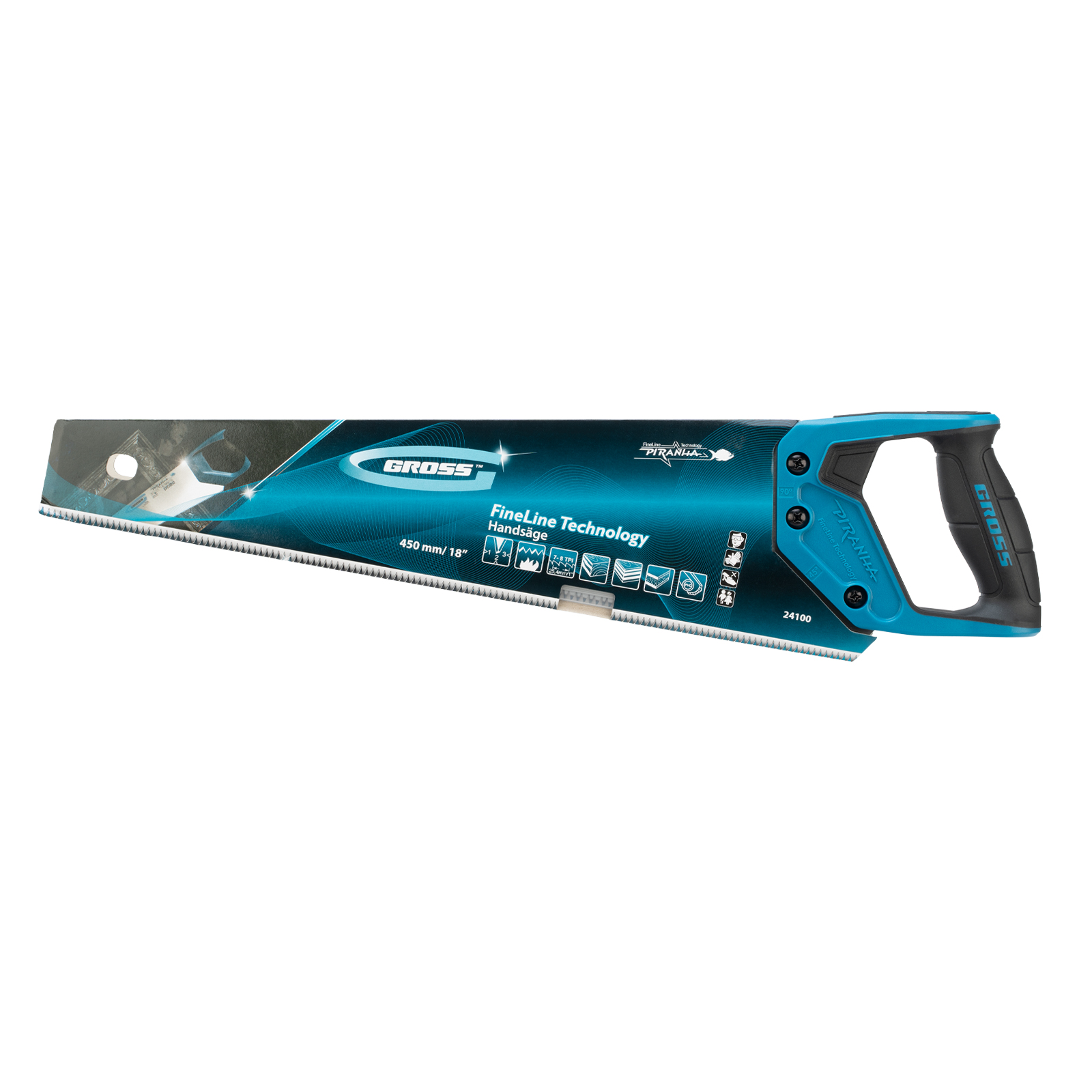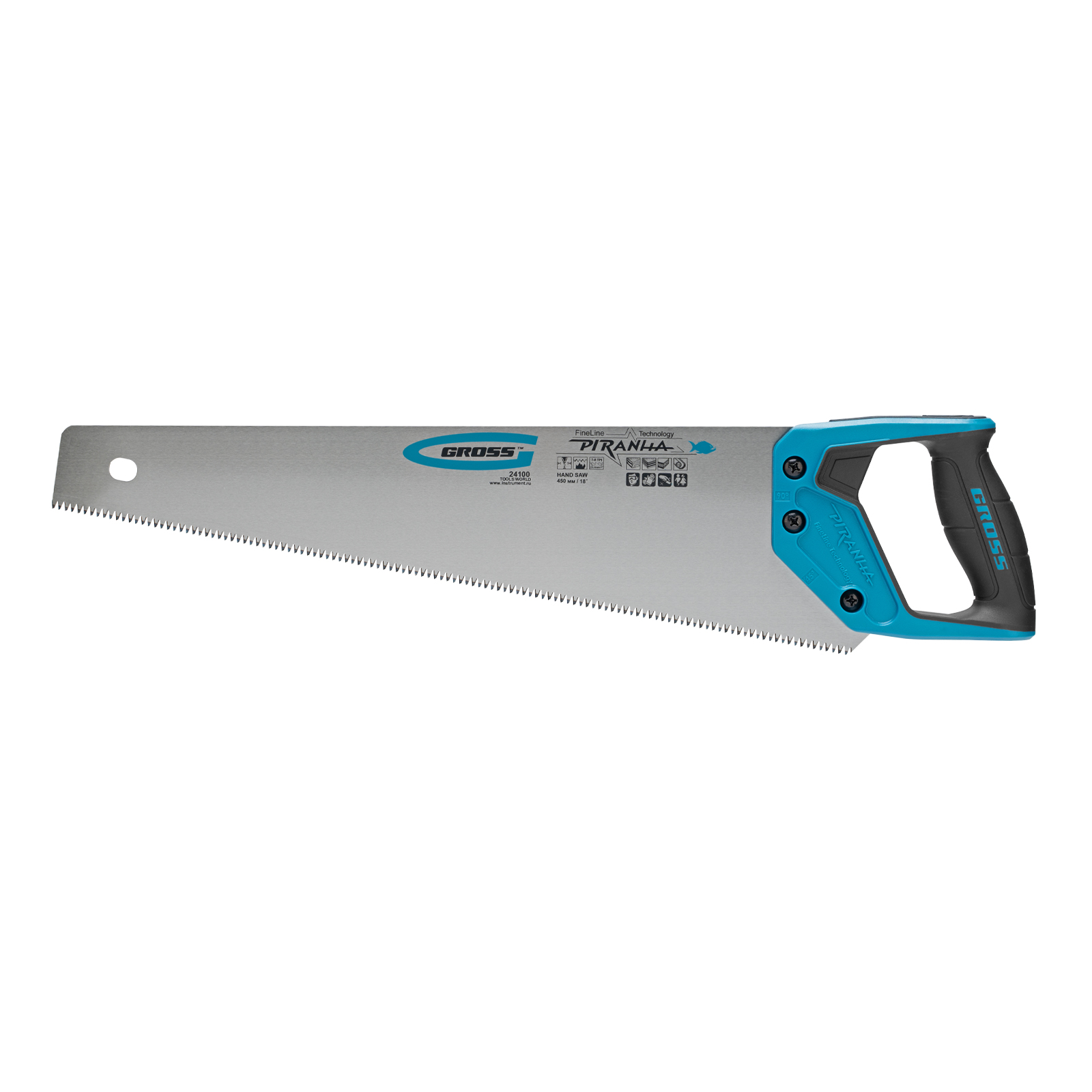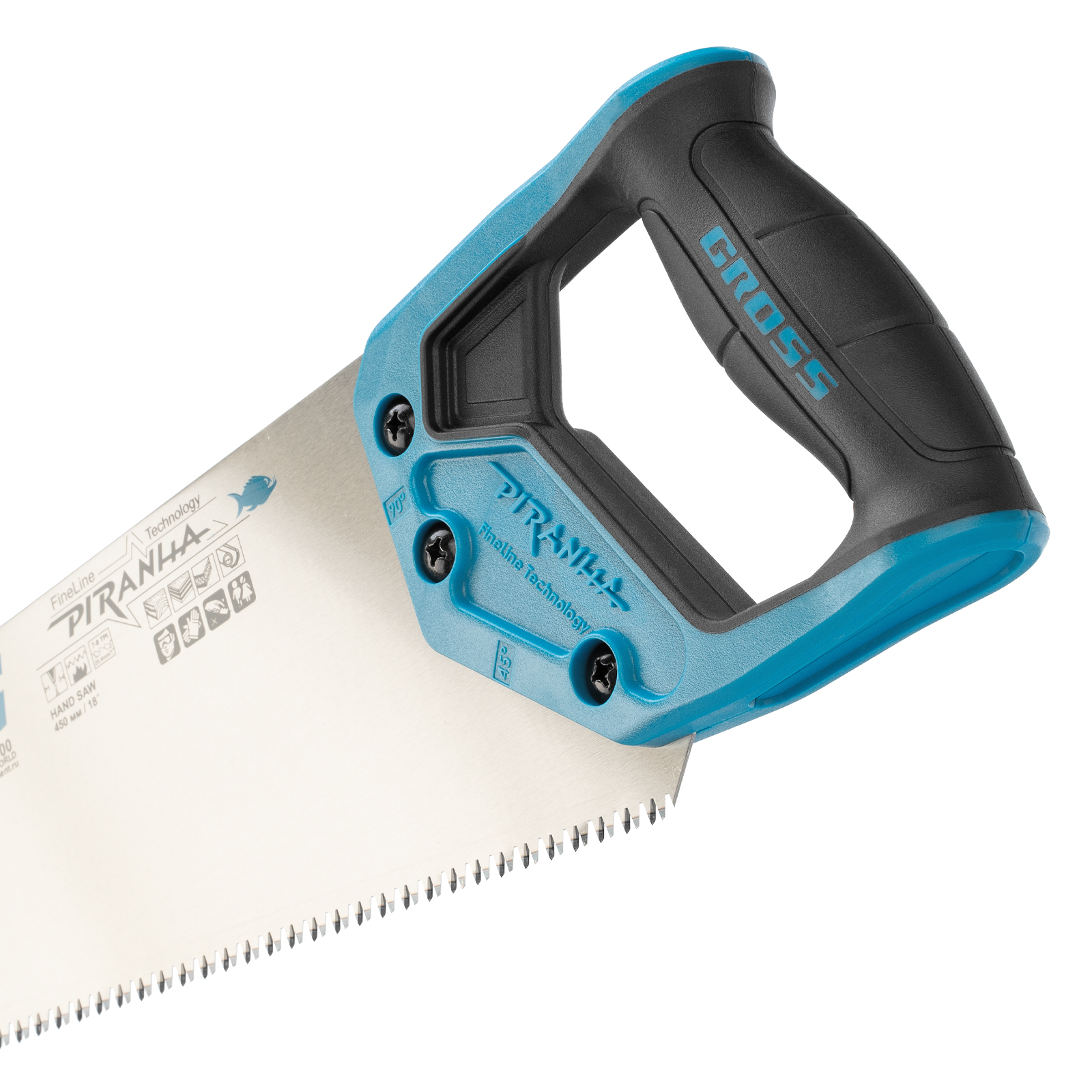 Ножовка по дереву "Piranha", 450 мм, 7-8 TPI, зуб-3D, каленый зуб, двухкомпонентная рукоятка Gross