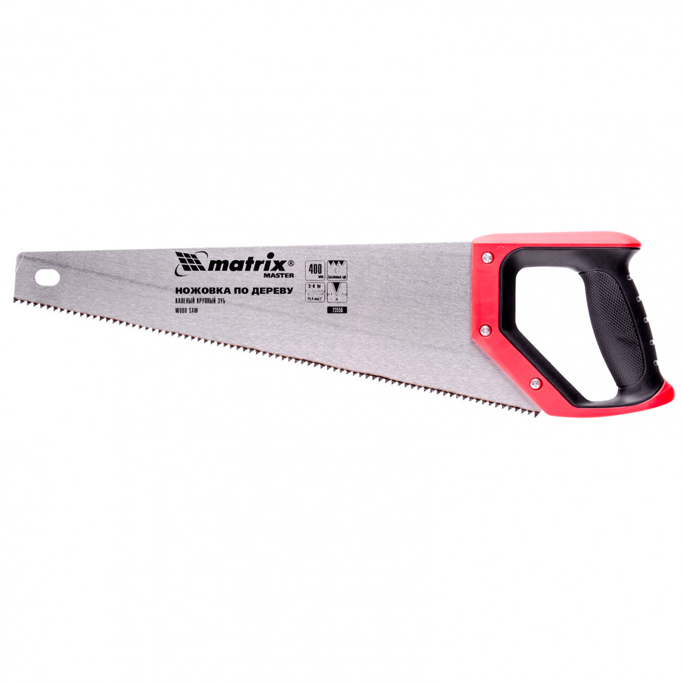 Ножовка по дереву, 400 мм, зуб 2D, каленый крупный зуб 5-6 TPI, двухкомпонентная рукоятка Matrix