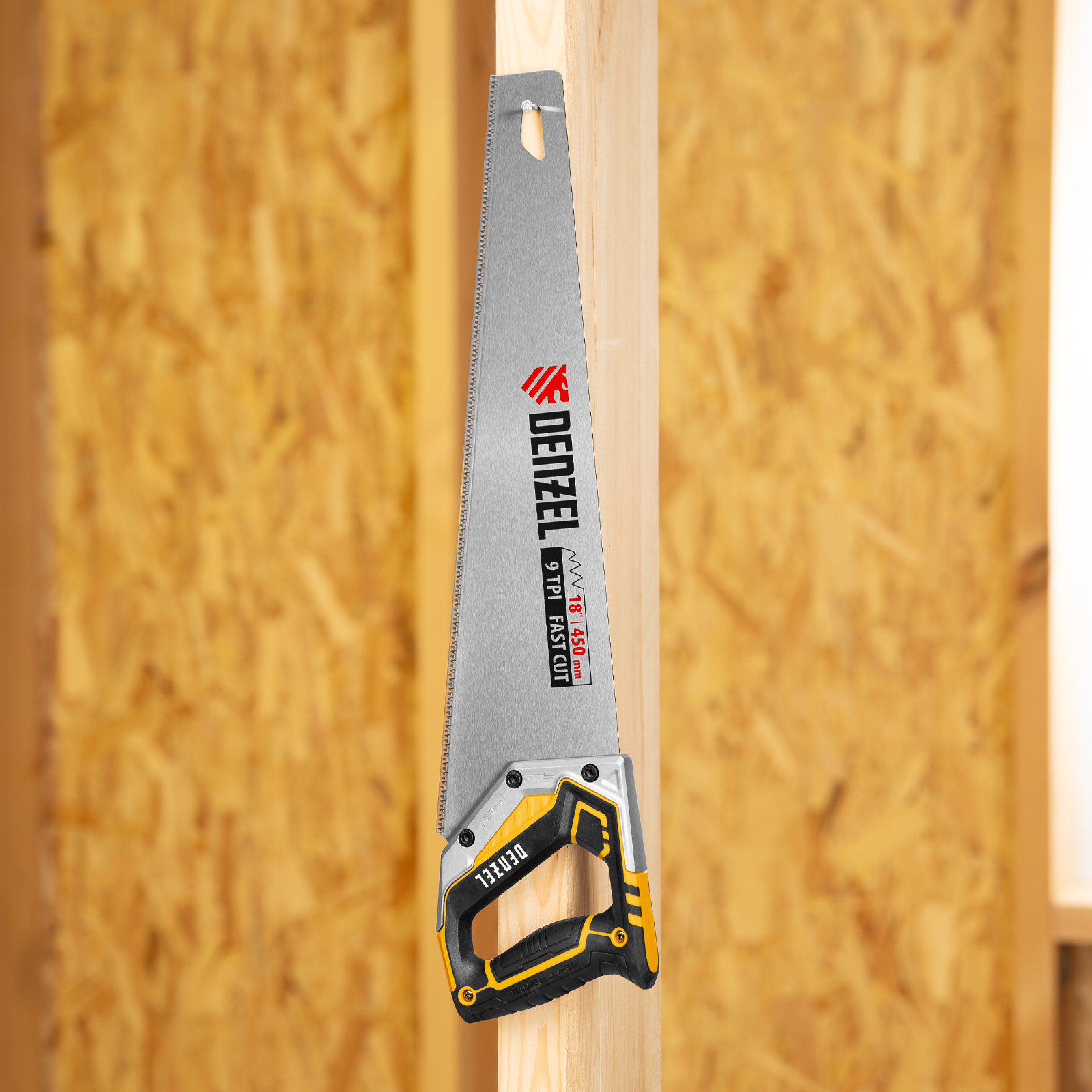 Ножовка по дереву, 450 мм, 9 TPI, зуб 3D, металлопластиковая рукоятка Denzel