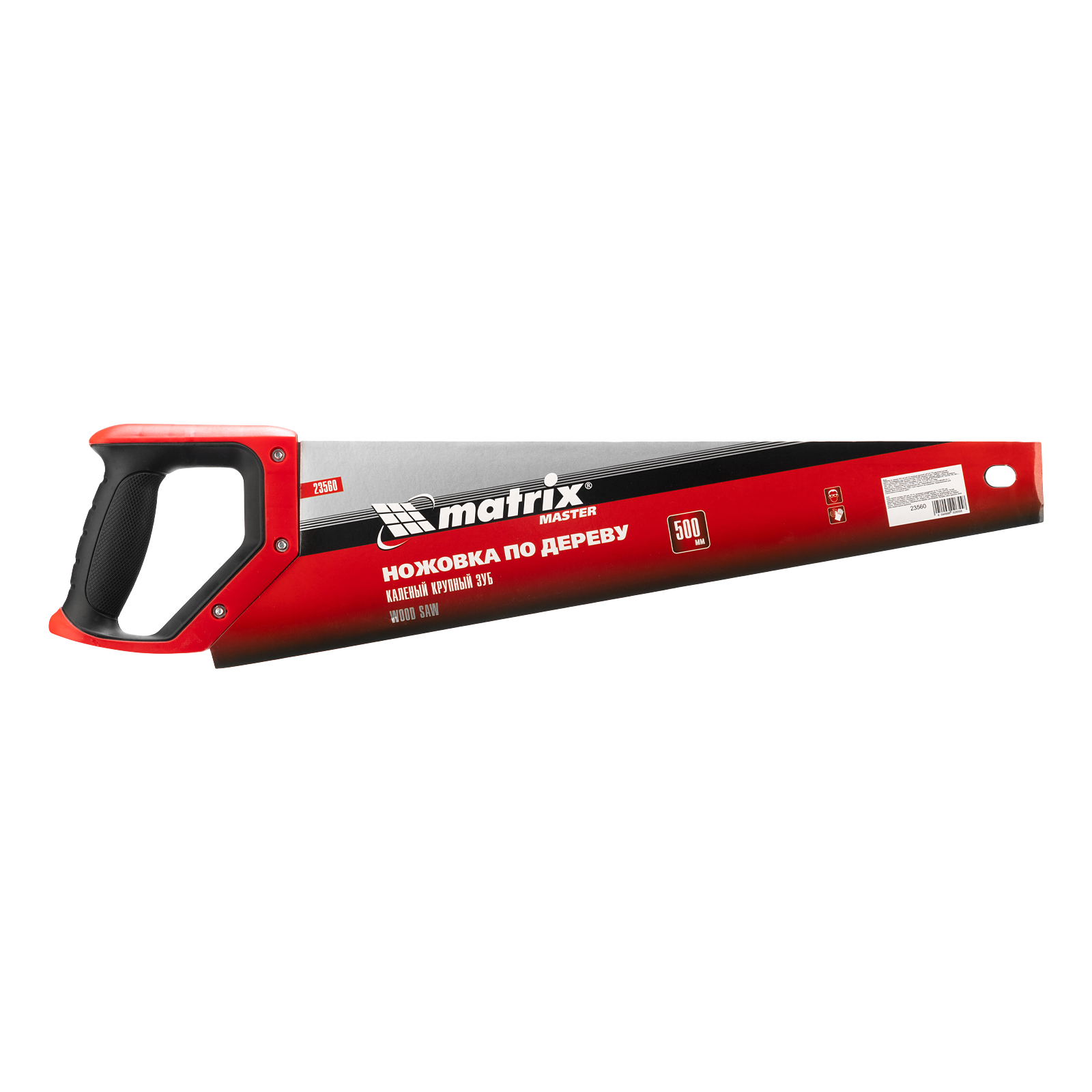 Ножовка по дереву Matrix 23560 с полотном длиной 500 мм, с крупными калеными зубьями с шагом 5-6 TPI, волновой вырубкой и 2D-заточкой, с двухкомпонентной рукояткой, используется для быстрой продольной или поперечной распиловки древесины. Высокая скорость работы достигается благодаря крупным зубьям с волновой заточкой и универсальным шагом 4-5 мм. Двухгранная заточка зубьев дает возможность пилить в направлении как от себя, так и на себя, а также перетачивать режущую кромку при необходимости. Ножовка подходит для выполнения плотницких и хозяйственных работ.