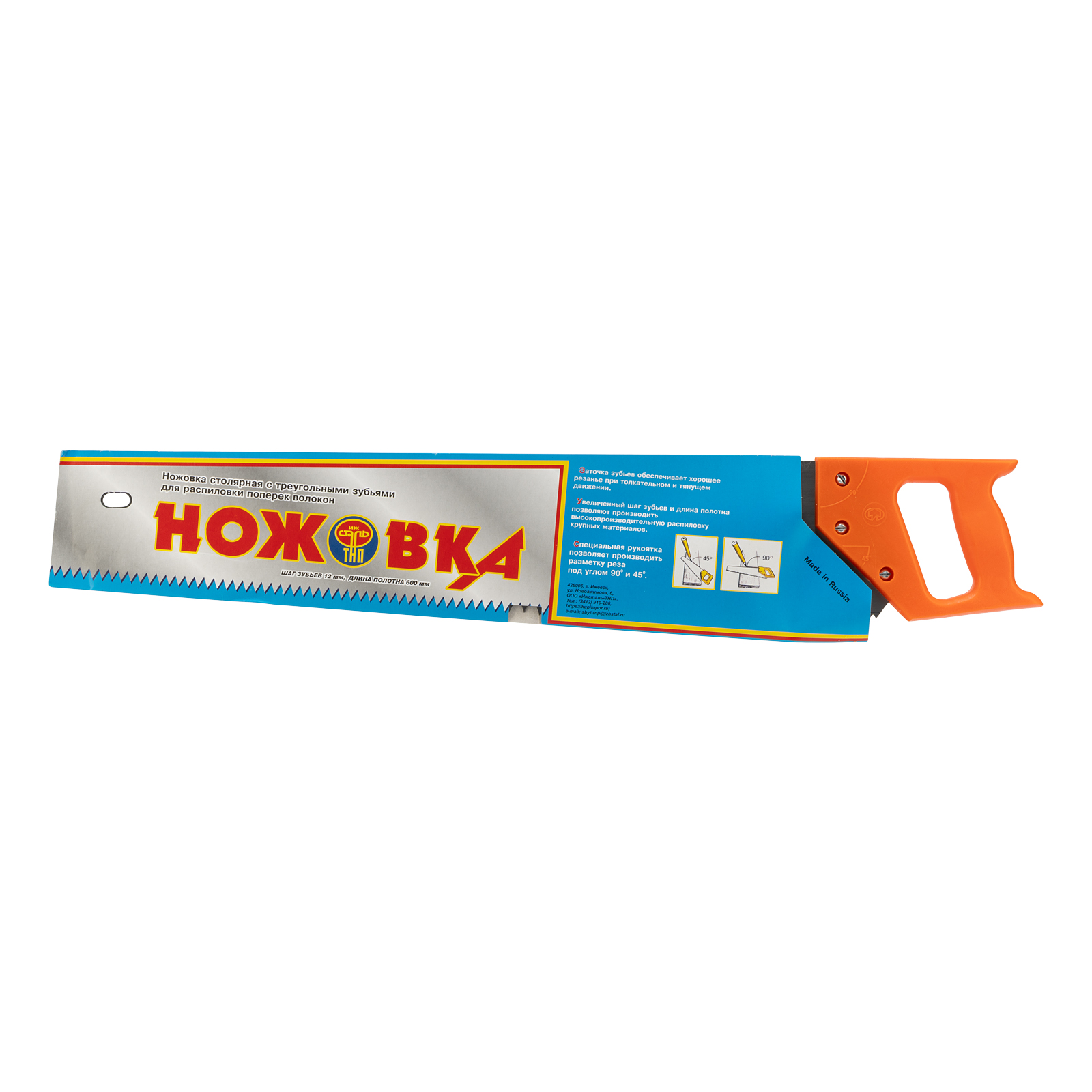 Ножовка по дереву 23167 с длиной полотна 600 мм и пластиковой рукояткой — режущий инструмент, шаг зубьев которого составляет 12 мм. Применяется для продольно-поперечного пиления древесины. Пилит в направлении от себя и на себя. Крупные зубья обеспечивают быстрый рез. Если режущая кромка затупится, ее можно заточить. Пила будет полезна столяру и плотнику, пригодится также дома или на даче.