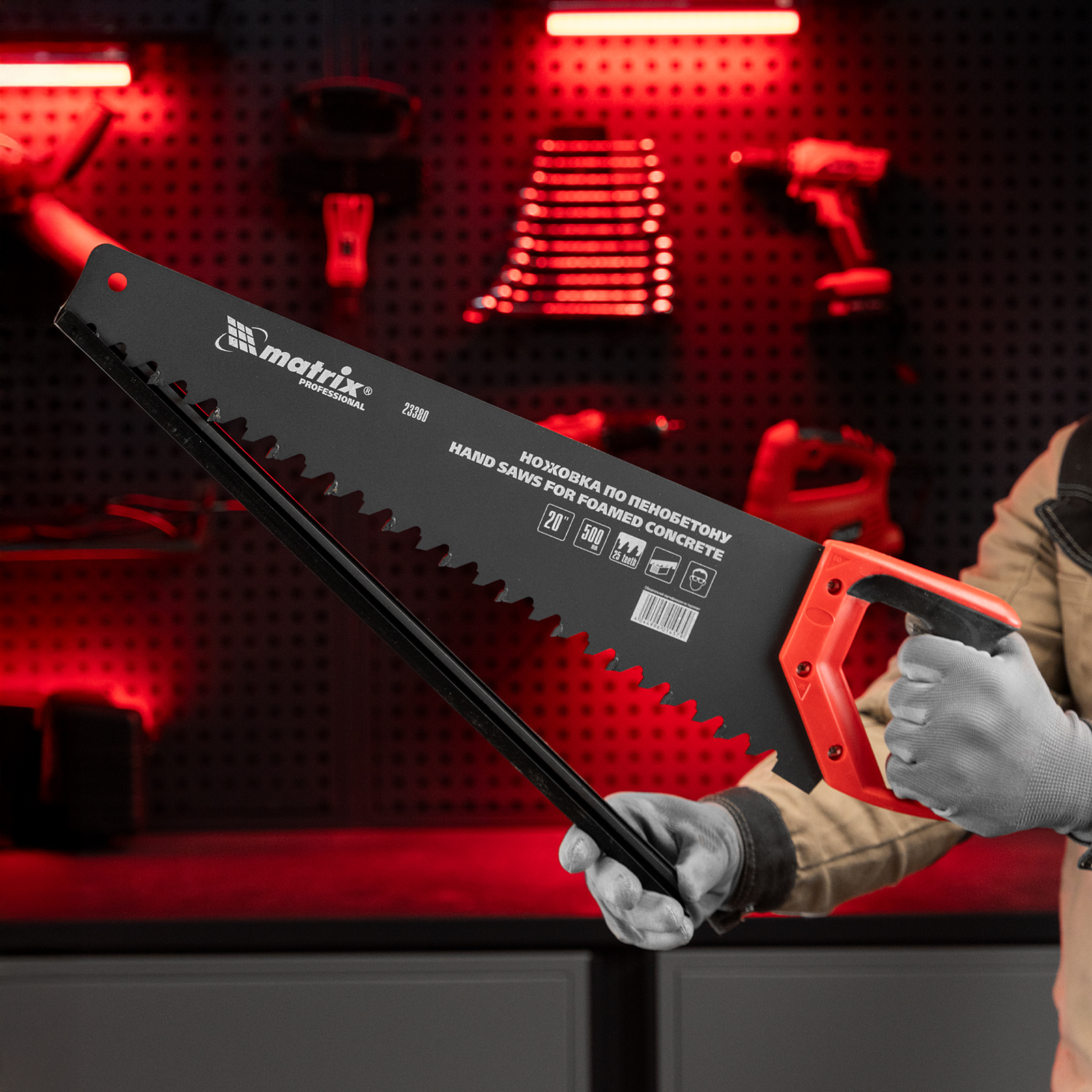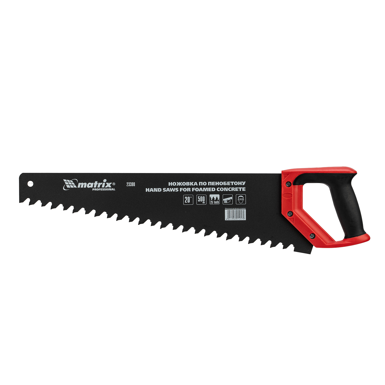 Ножовка по пенобетону, 500 мм, защитное покрытие, твердосплавные напайки на зубья, двухкомпонентная рукоятка Matrix
