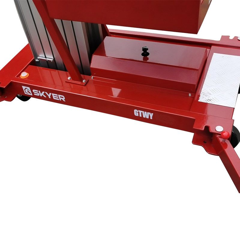 - Алюминиевая телескопическая мачта обеспечивает плавный и безопасный подъем. Материал легкий, но очень прочный — подъемник прослужит долго даже при интенсивном использовании.