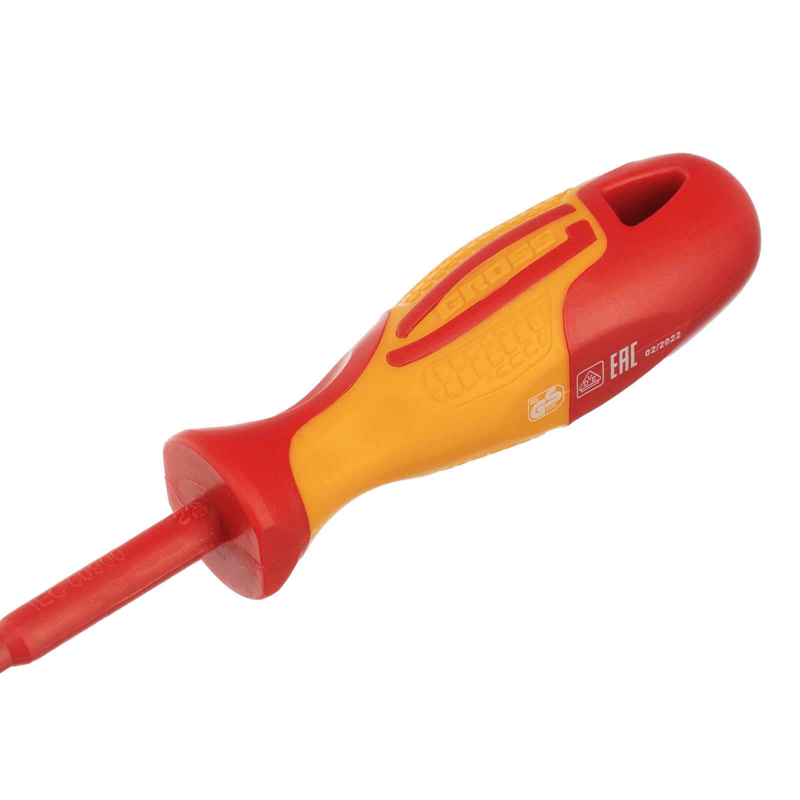 • На рукоятке есть обозначение калибра шлица и дата производства отвертки, поэтому удобно отслеживать срок годности диэлектрического покрытия.