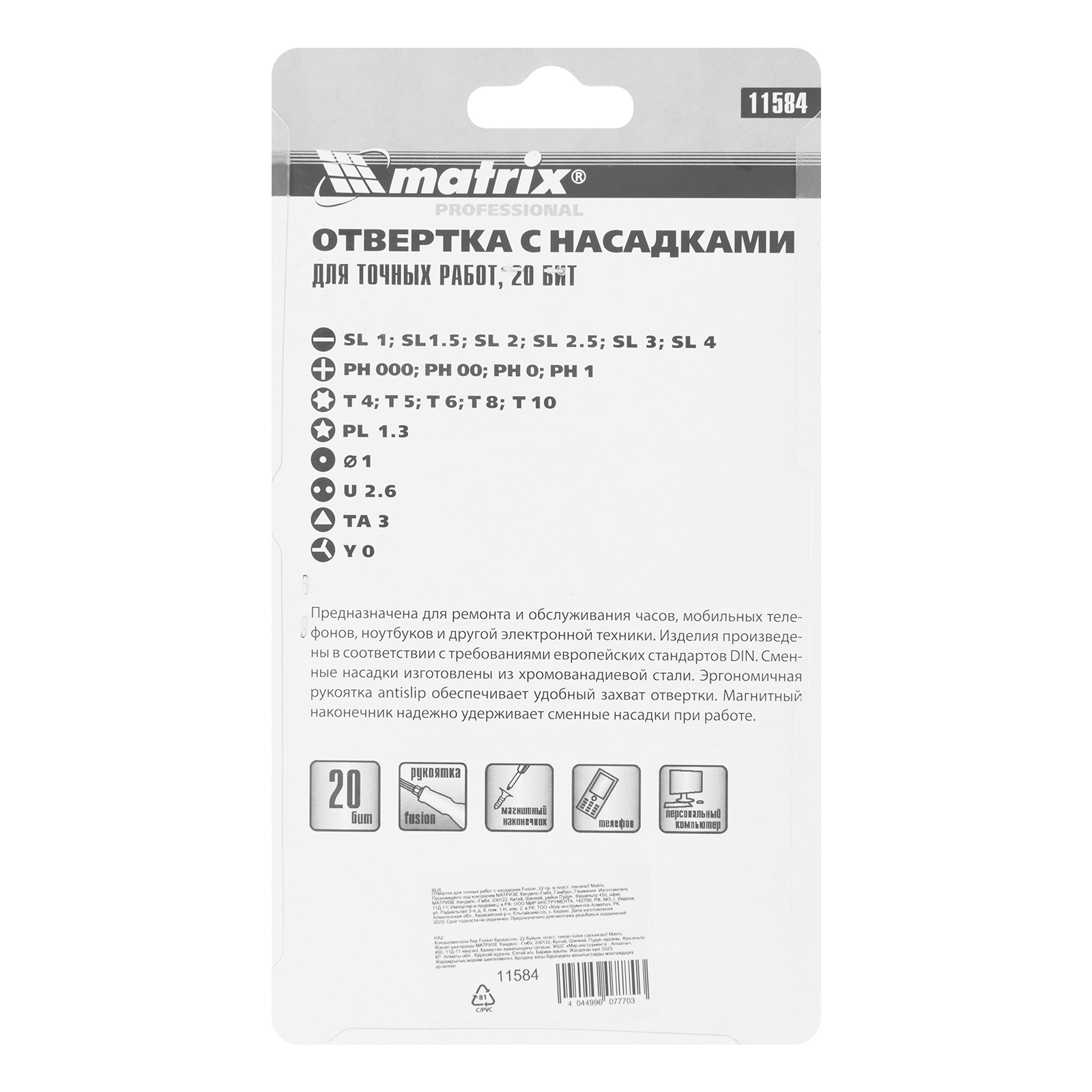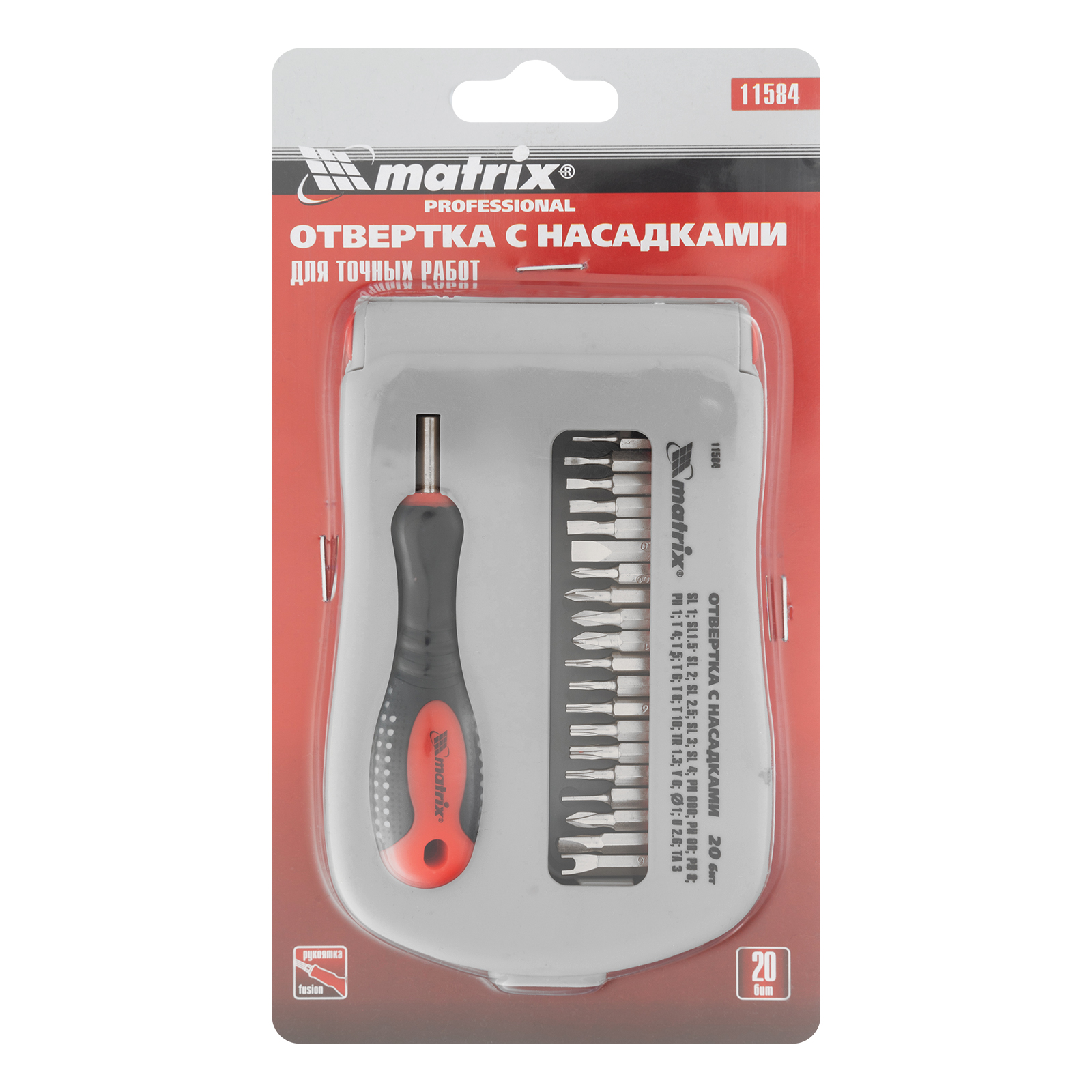 Отвертка для точных работ с насадками Fusion, 22 предмета, в пластиковом пенале Matrix