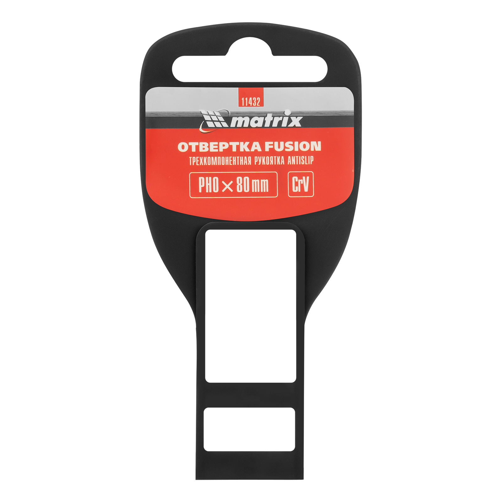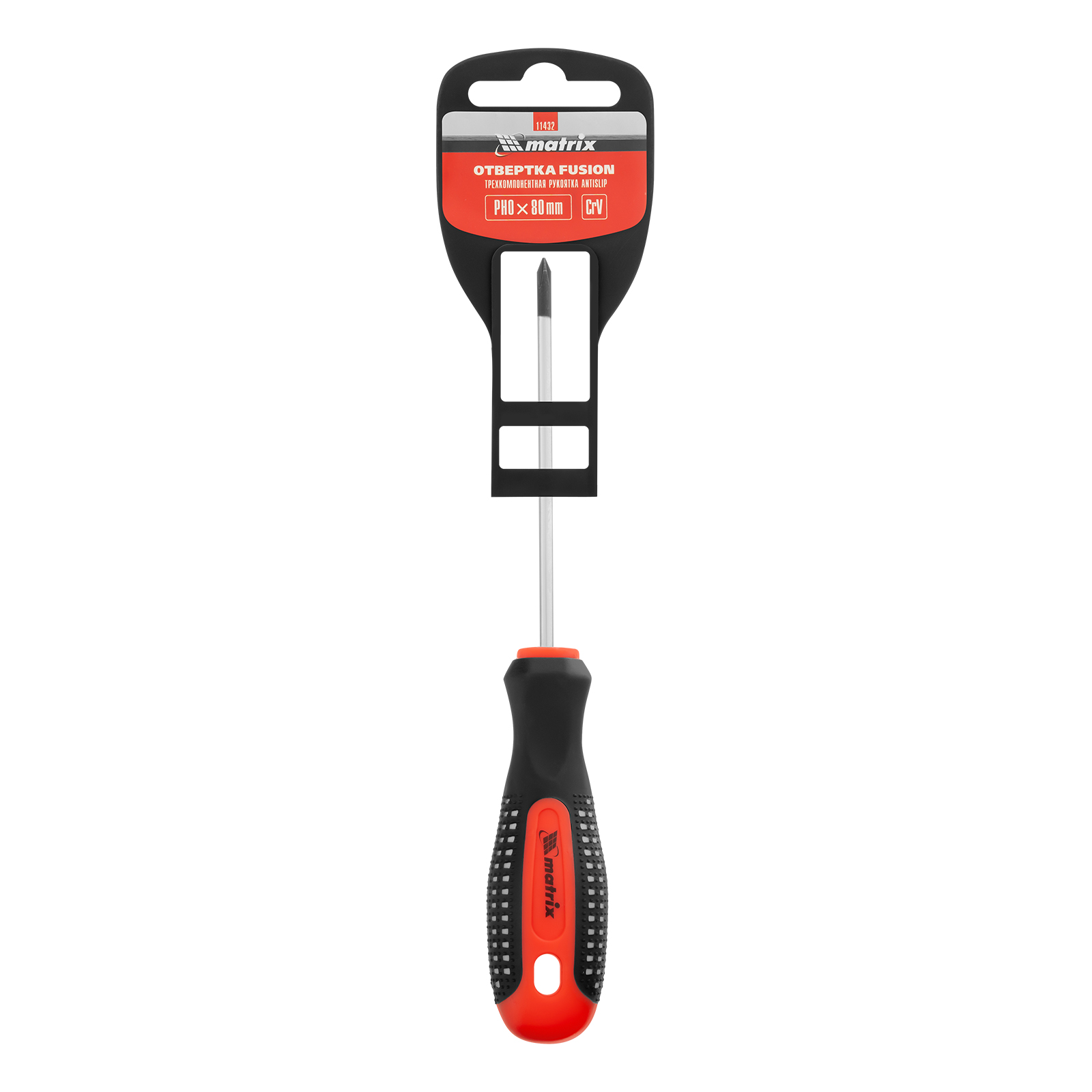 Отвертка Fusion, PH0 х 80 мм, CrV, трехкомпонентная рукоятка "Anti slip" Matrix в Казани