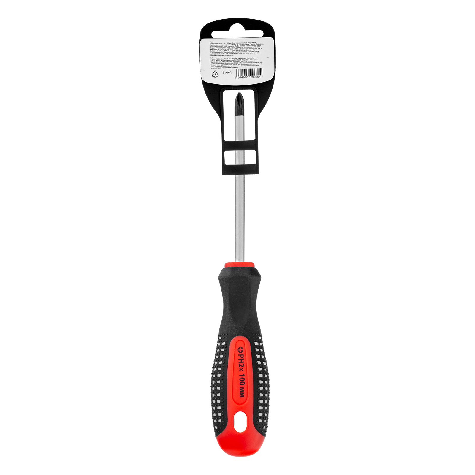Отвертка Fusion, PH2 х 100 мм, CrV, трехкомпонентная рукоятка "Anti slip" Matrix в Казани