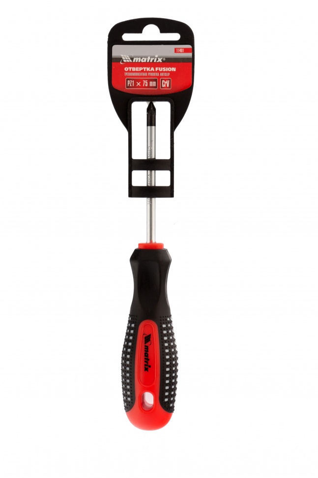Отвертка Fusion, PZ1 x 75 мм, CrV, трехкомпонентная рукоятка "Anti slip" Matrix